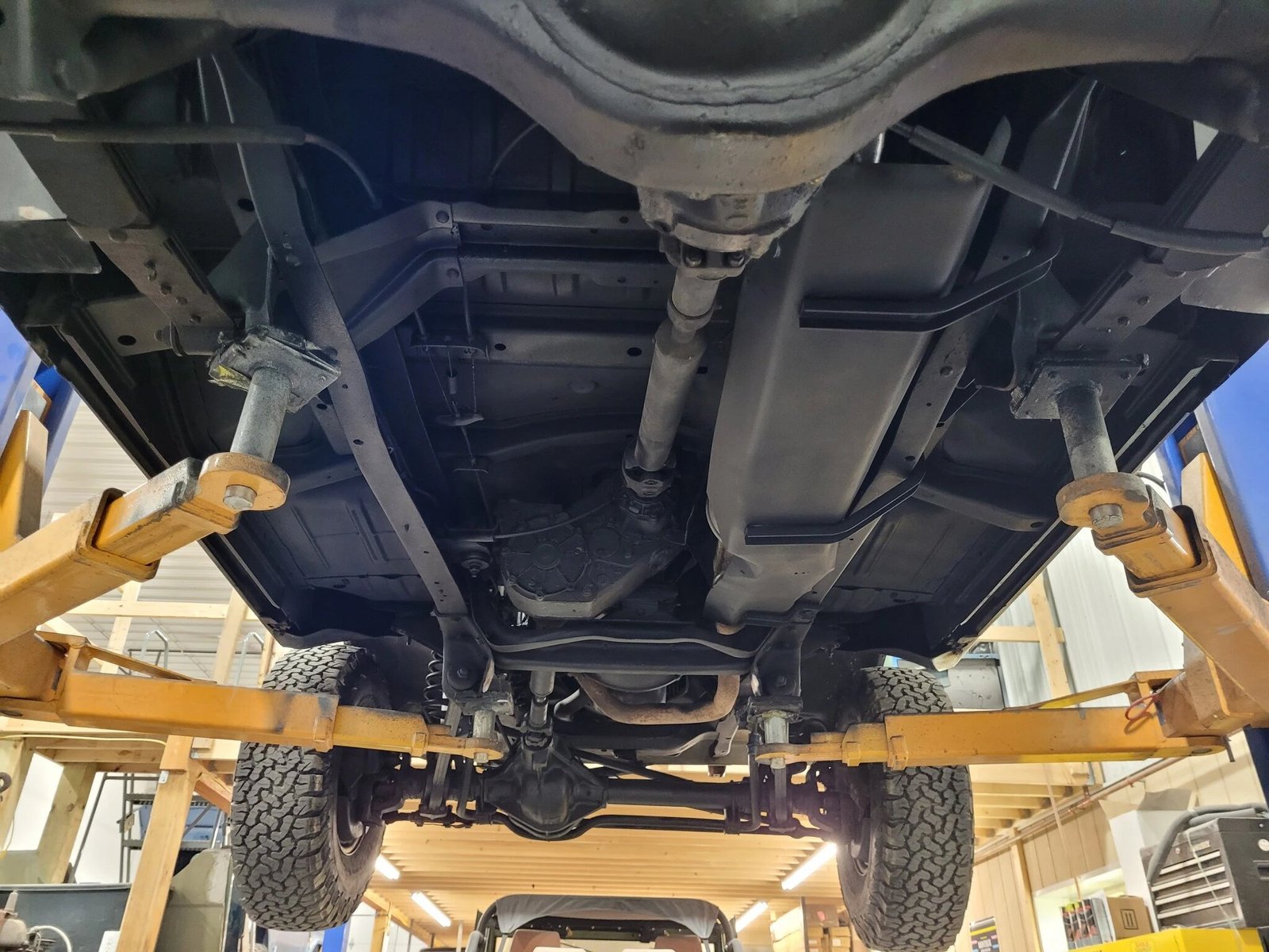 The 351ci V8 sends power to the rear or all four wheels through a four-speed manual transmission, a dual-range transfer case, and a 3.50:1 rear differential.
