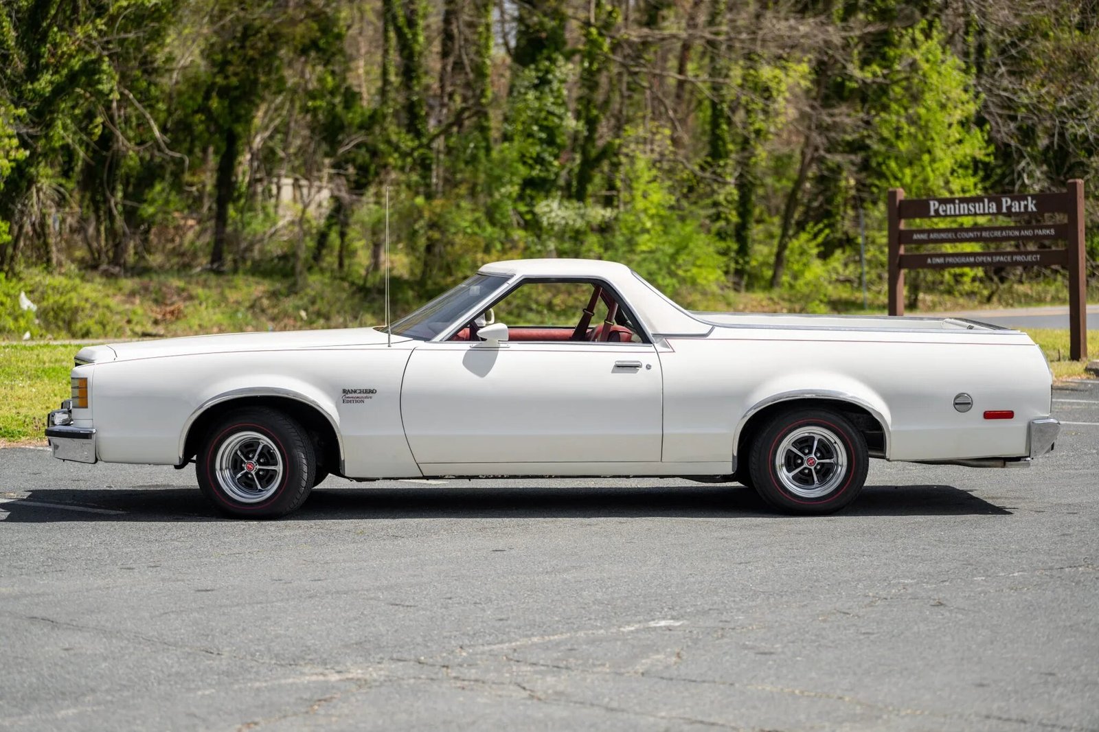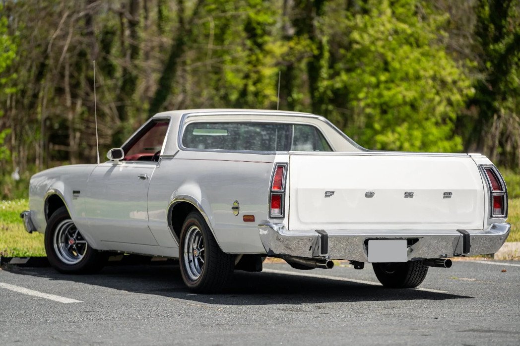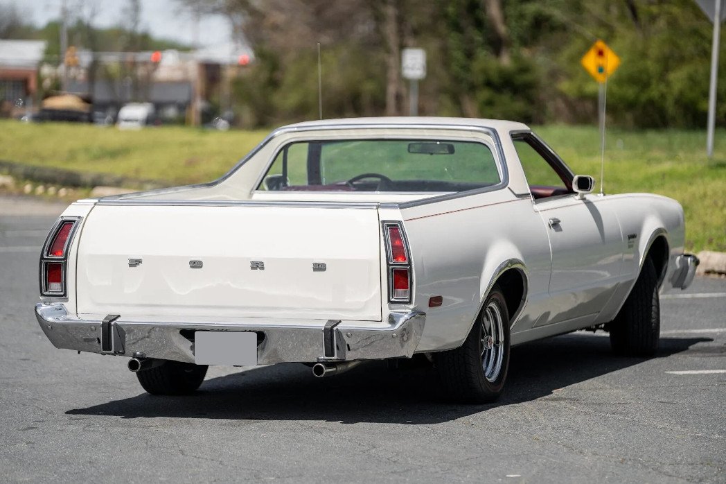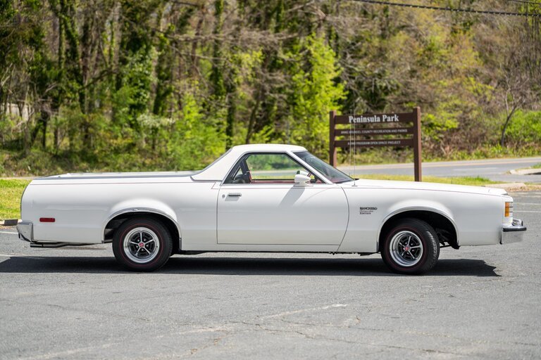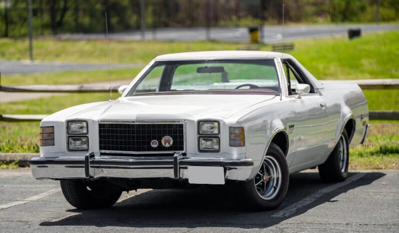 The seventh-generation Ranchero shared its platform with the contemporary Ford LTD II, and this example is one of 23 1979 models finished in white with a white Valino vinyl roof.
