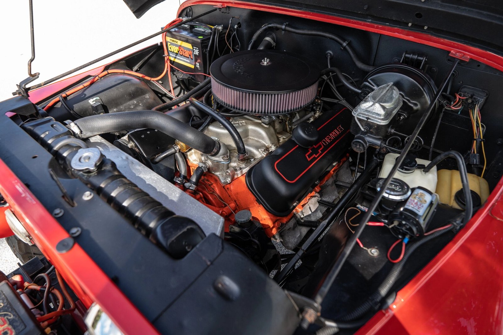 The 454ci Chevrolet V8 is fitted with an Edelbrock carburetor and headers.