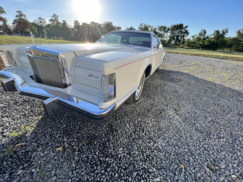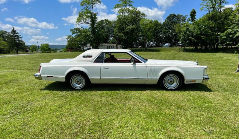 This 1979 Lincoln Continental Mark V is powered by a 400ci V8 mated to a three-speed automatic transmission and is finished in white with a white landau roof over red velour upholstery.