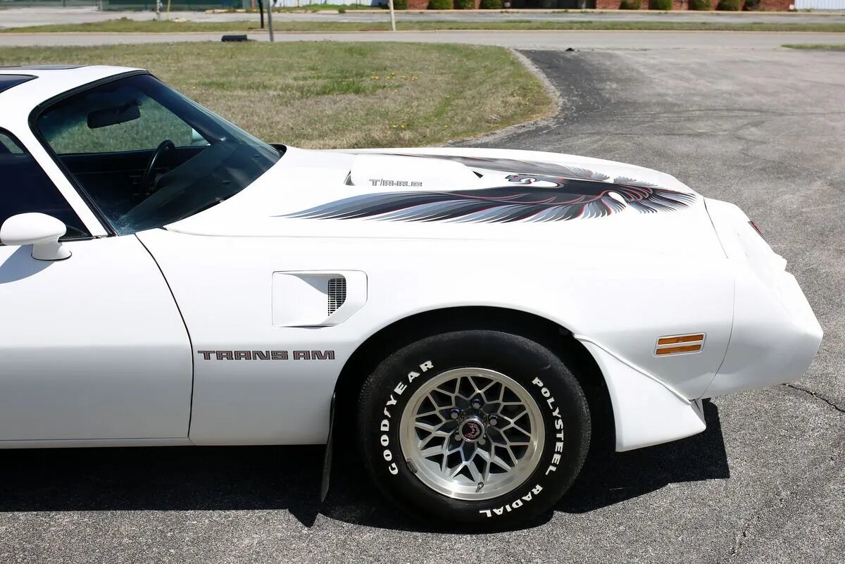 The 15″ silver snowflake wheels feature Trans Am center caps and are mounted with Goodyear Polysteel Radial white-letter tires.