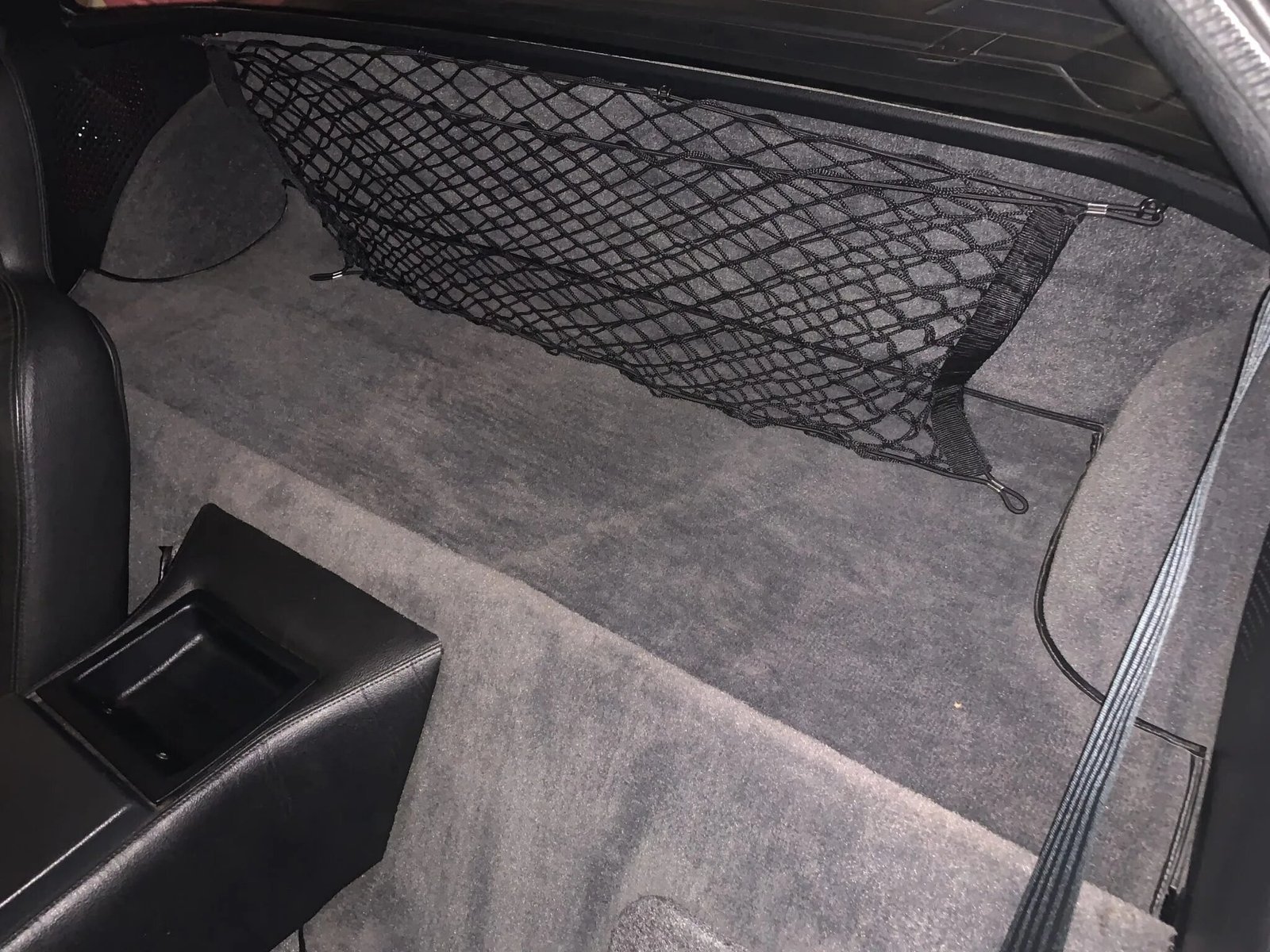 Modifications include a stainless-steel shifter plate and sill plate letters, Sony speakers, a Lockzilla keyless entry system, an Alcantara headliner, and a spare storage compartment door with a “flux capacitor”-style face.