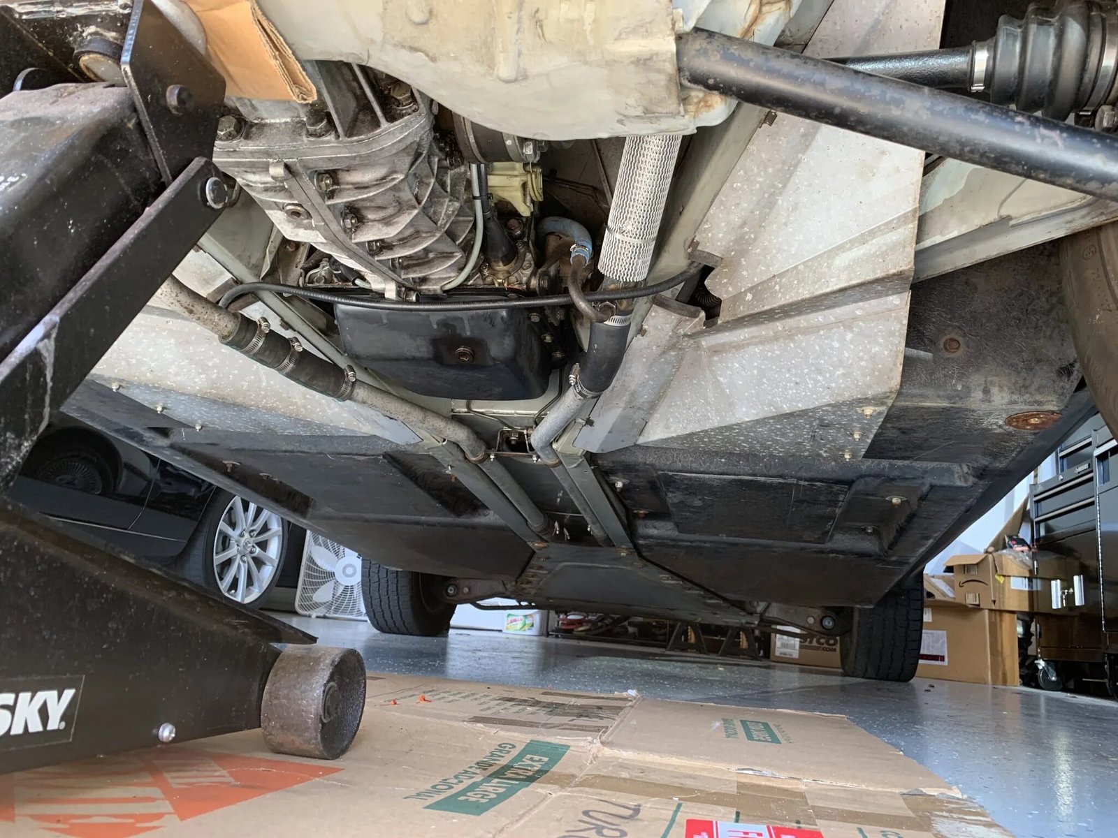 The 2.85-liter PRV V6 was rated at 130 horsepower and 153 lb-ft of torque when new. Service performed in preparation for sale included replacement of the fuel accumulator, fuel filter, fuel pump hoses, air filter, and louver struts. A battery cut-off switch is installed. Power is delivered to the rear wheels via a three-speed automatic transaxle. The CV axles and transmission fluid were replaced in preparation for sale.