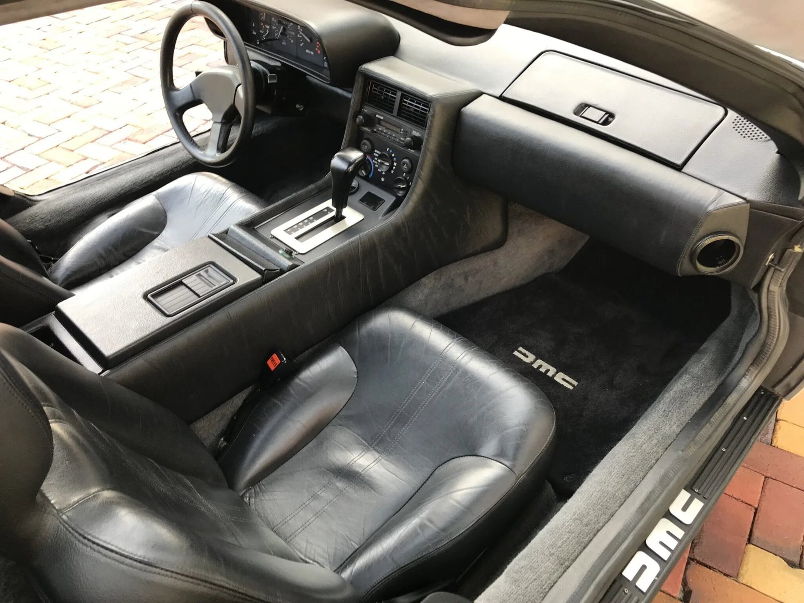 Equipment includes air conditioning, a cassette stereo, power windows, and DMC-branded floor mats.