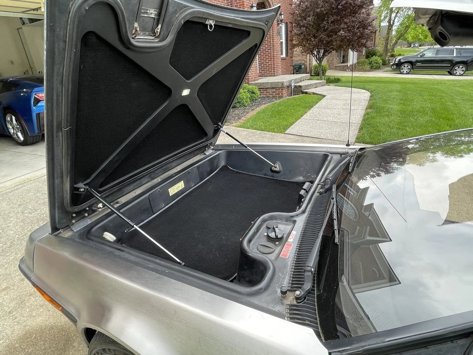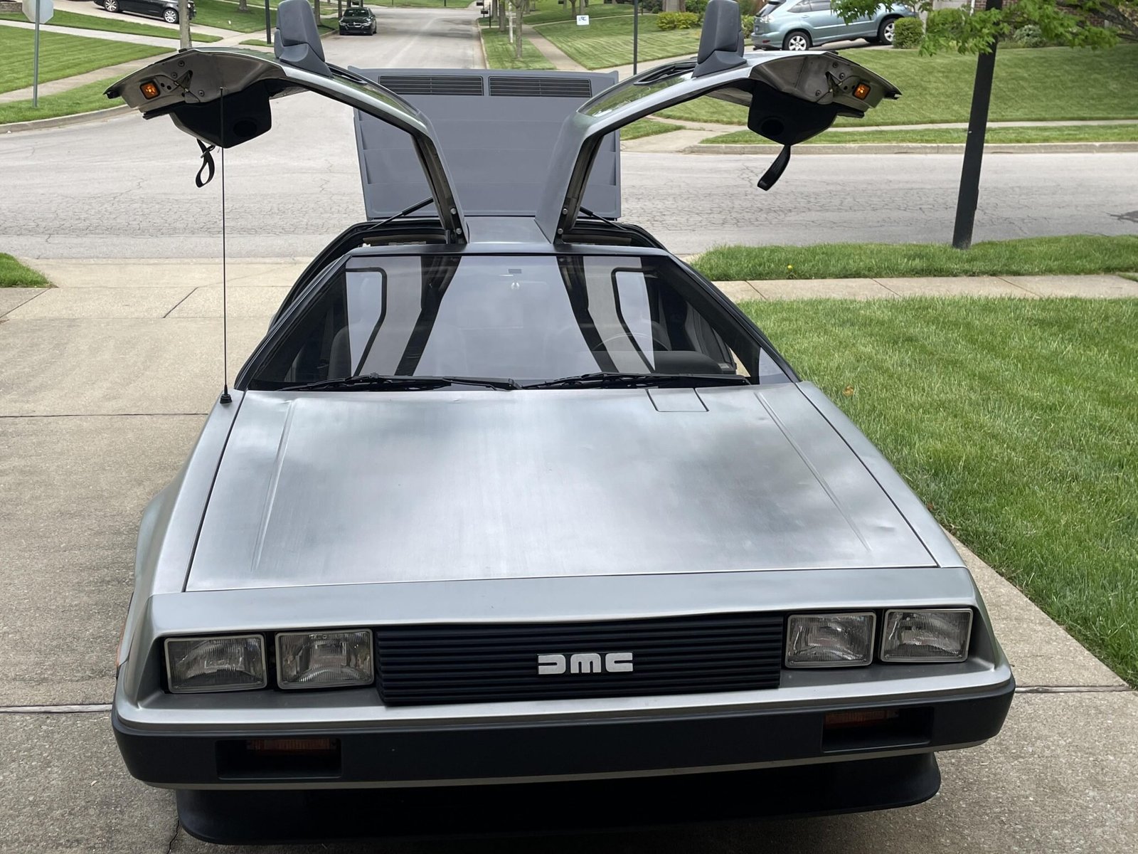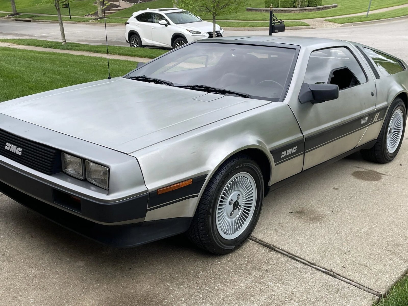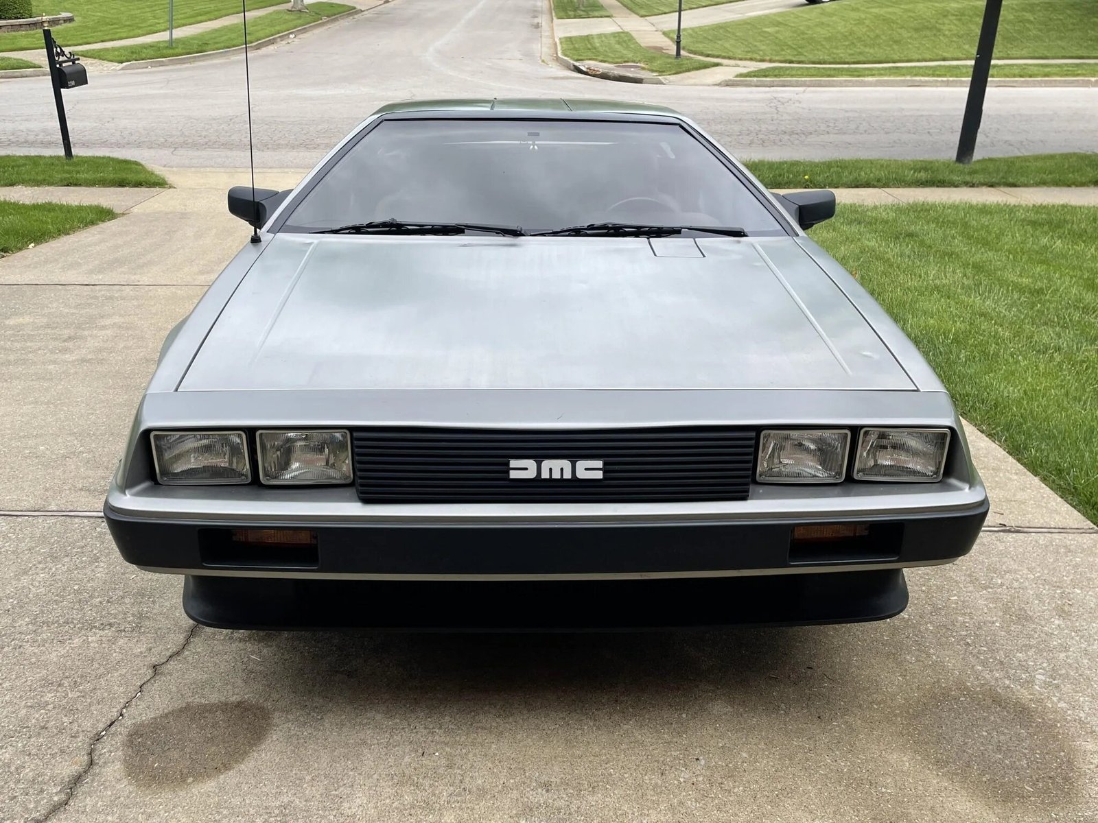 This 1981 DeLorean DMC-12 features brushed stainless steel bodywork over black leather upholstery and is powered by a twin-turbocharged 2.85-liter V6 paired with a five-speed manual transaxle.