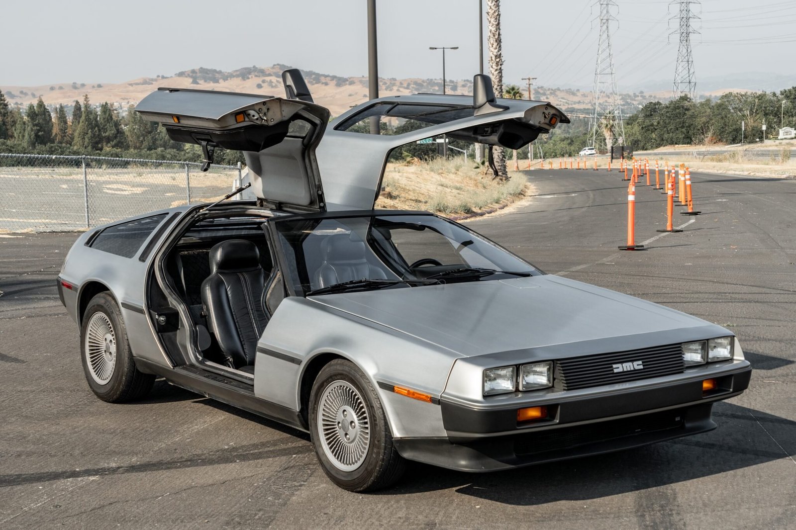 The Giugiaro-styled DMC-12 features brushed-stainless-steel body panels and urethane front and rear fascias mounted on a composite underbody and a Lotus-derived steel chassis.