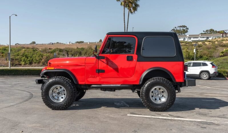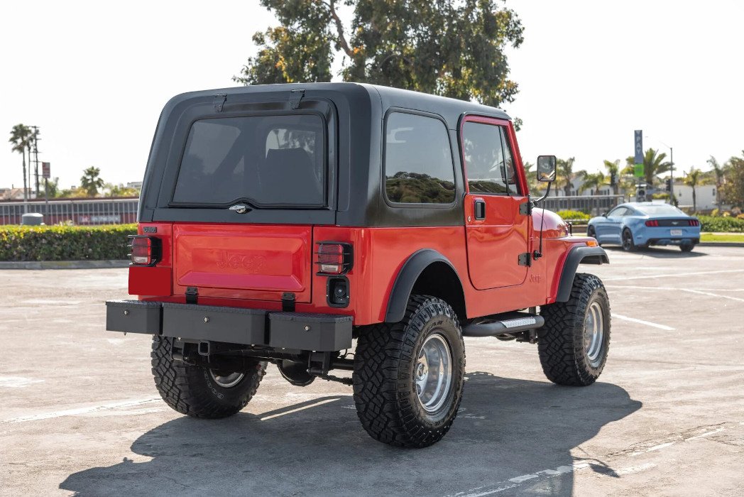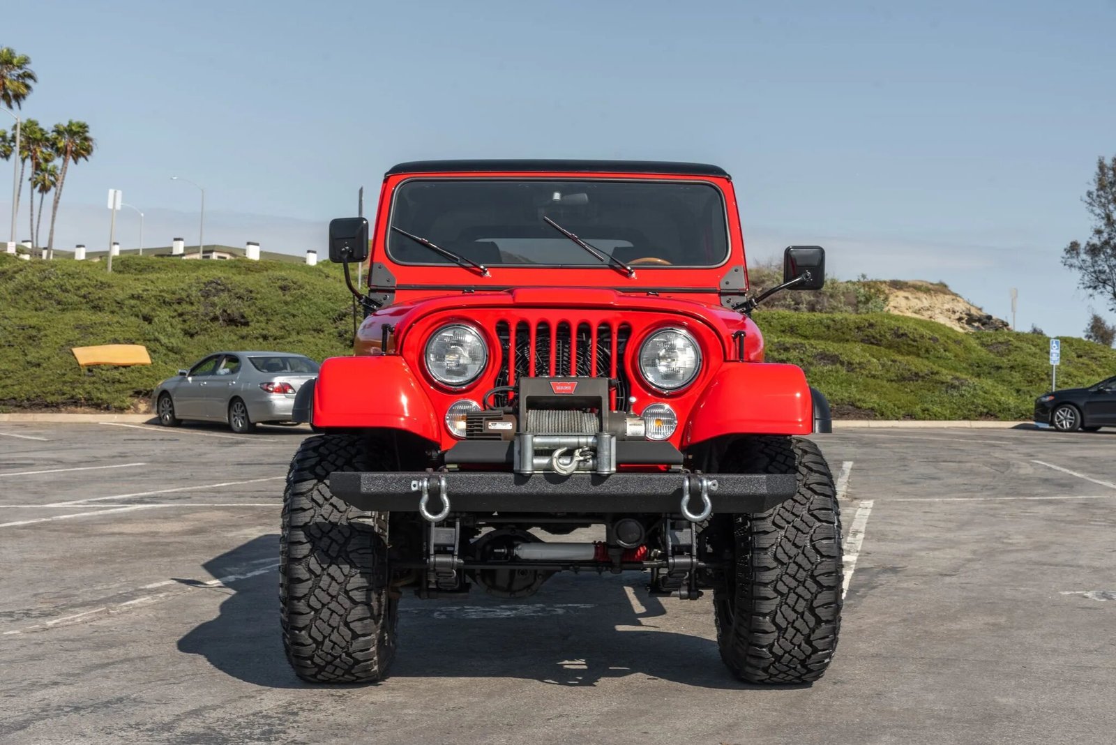 This 1981 Jeep CJ-7 is finished in red over black vinyl upholstery and is powered by a 4.2-liter inline-six mated to a four-speed manual transmission and a dual-range transfer case.