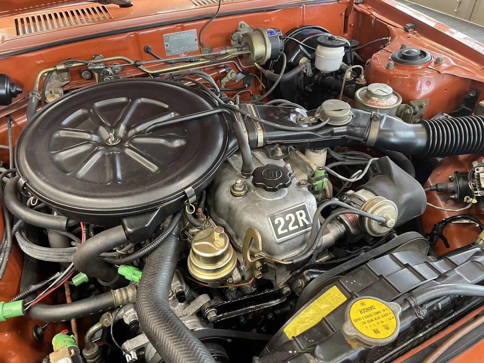 The carbureted 2.4-liter 22R inline-four was factory rated at 96 horsepower and 129 lb-ft of torque. An oil change was performed in preparation for the sale. Power is sent to the rear wheels through a five-speed manual transmission. The exhaust mid-pipe and muffler have been replaced.