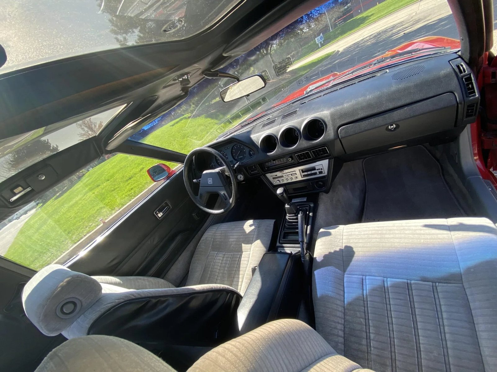 The car is finished in red over gray cloth upholstery and powered by a turbocharged 2.8L inline-six paired with a five-speed manual transmission.