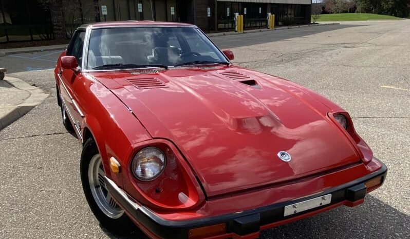 The body is finished in red and is equipped with body-color bumpers, headlamp washers, a NACA hood duct, a rear window wiper, and removable T-top roof panels.