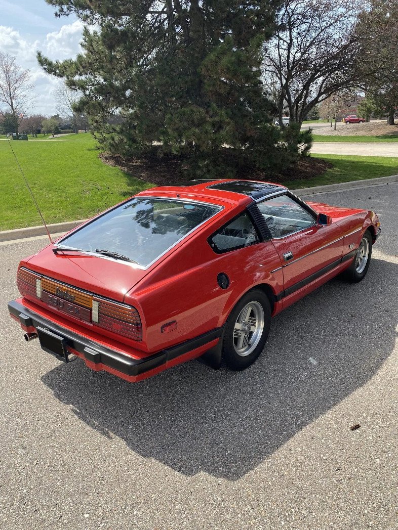 Appointments include air conditioning, a vocal warning system, cruise control, power windows and locks, 280ZX-branded floor mats, and a factory AM/FM cassette stereo with integrated equalizer knobs.
