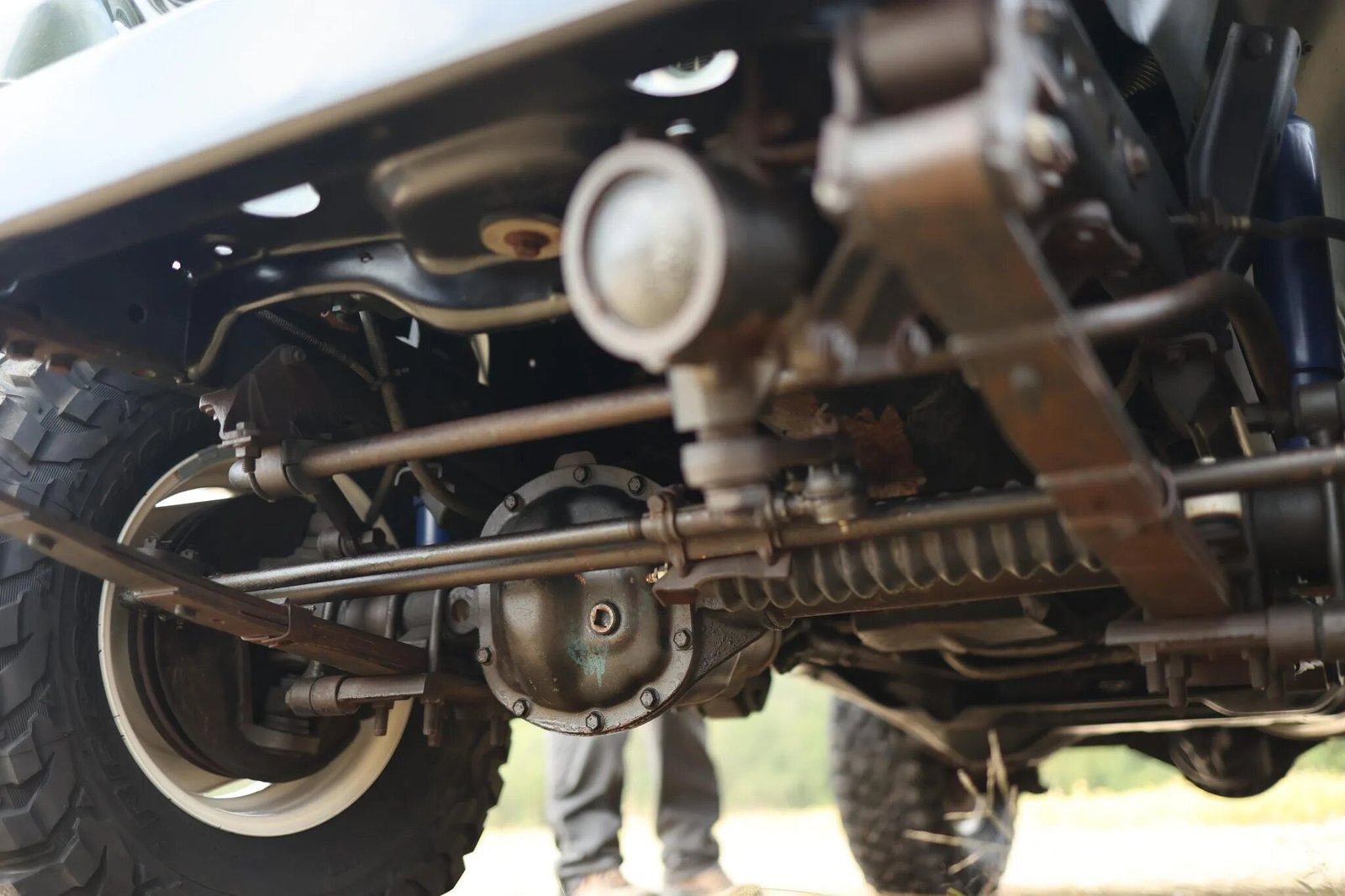 Steel 15″ wheels are powder coated white and wear 31×10.5″ BFGoodrich Mud-Terrain T/A tires.