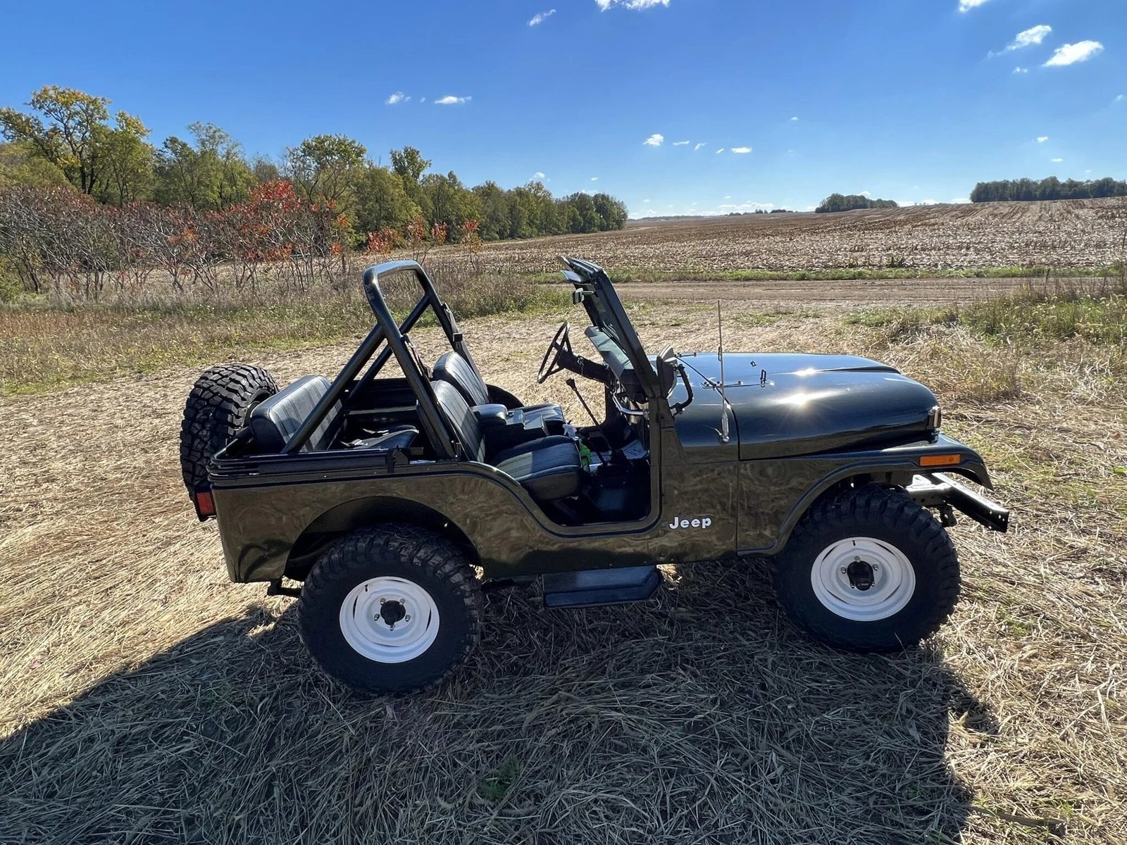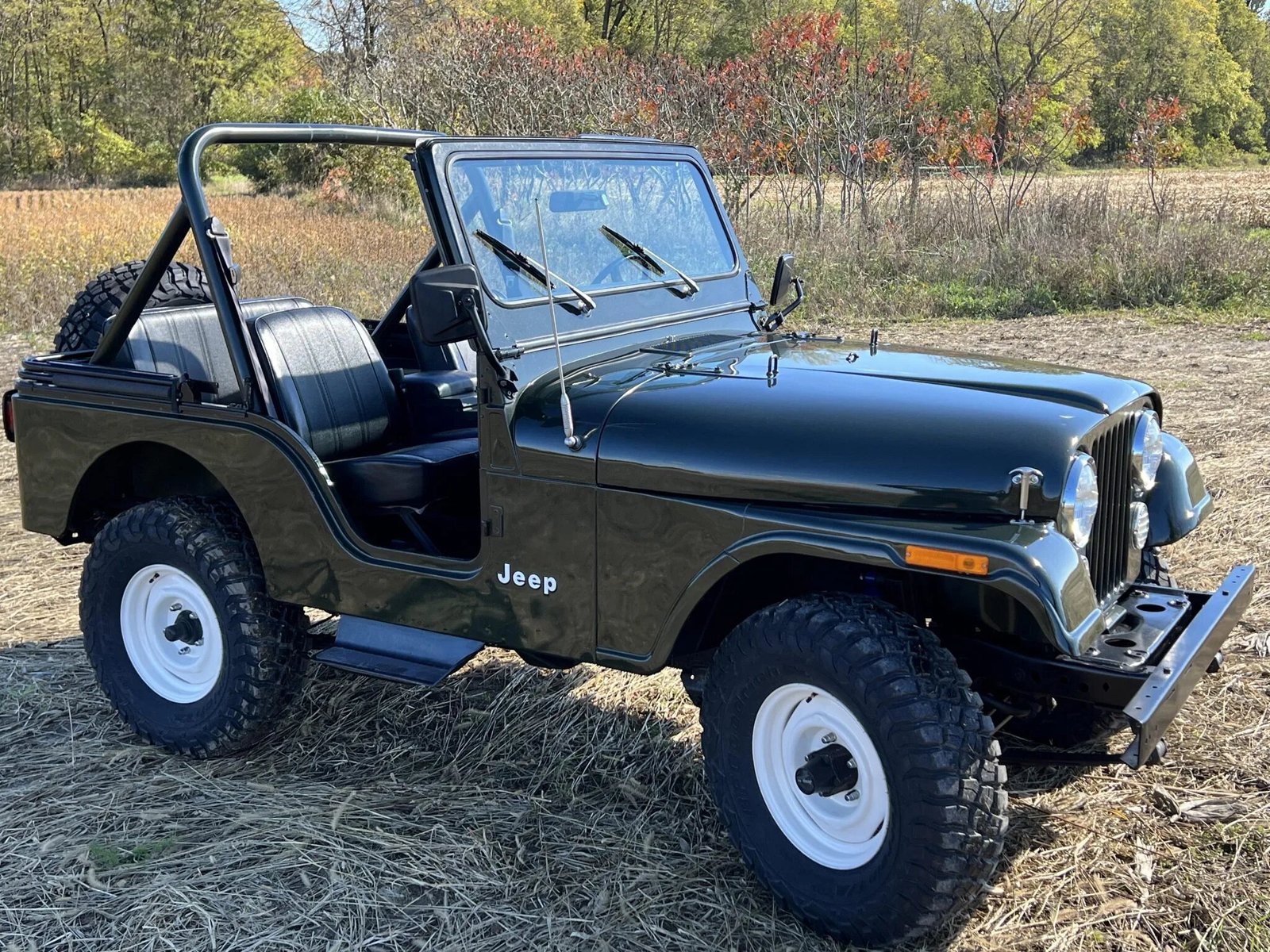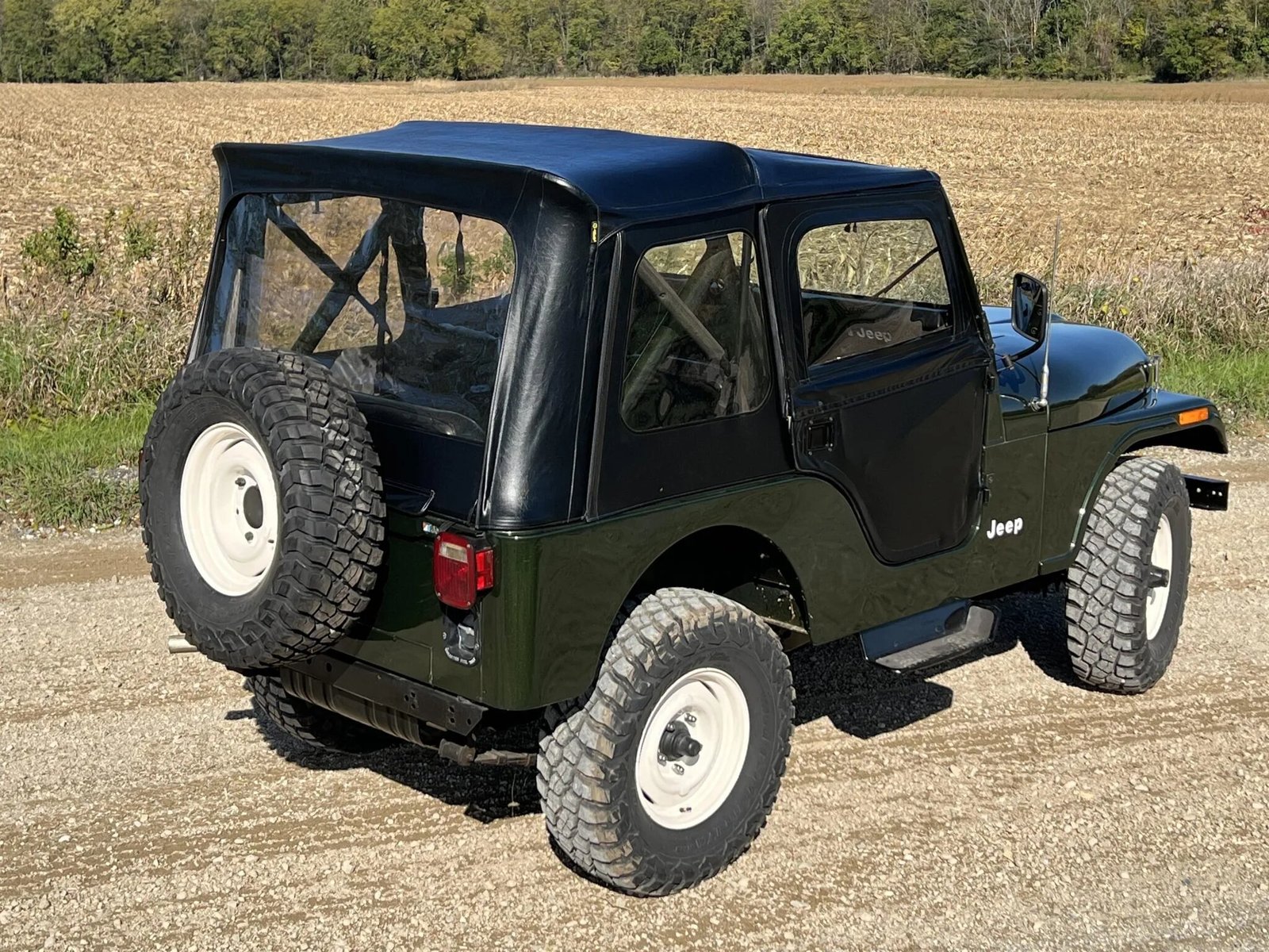 This 1983 Jeep CJ-5 is finished in Sherwood Green Metallic over black vinyl and is powered by a 4.2-liter inline-six paired with a four-speed manual transmission and a dual-range transfer case.