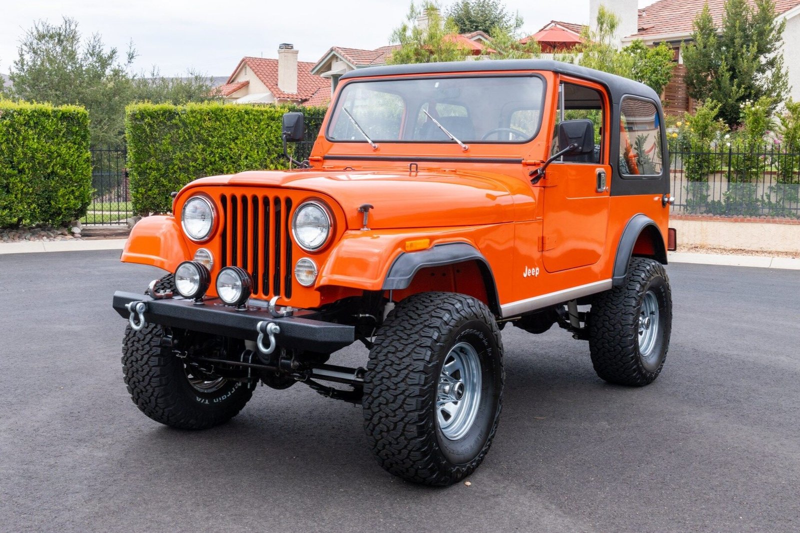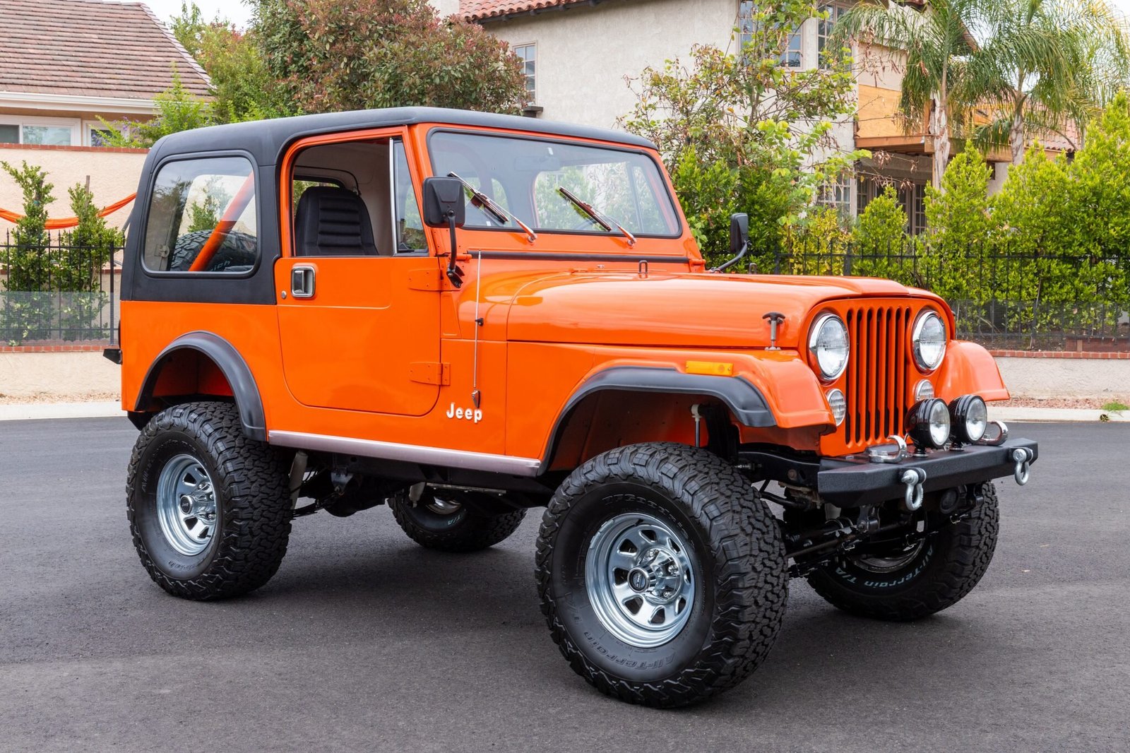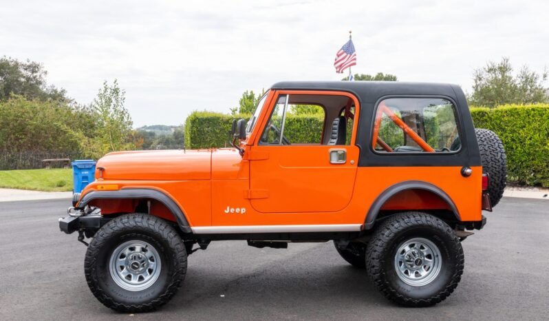 This 1983 Jeep CJ-7 is equipped with a factory removable hardtop, a lift kit, aftermarket bumpers, locking front hubs, fog lights, and BFGoodrich 33″ tires.