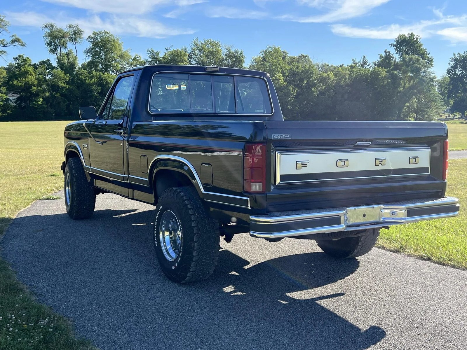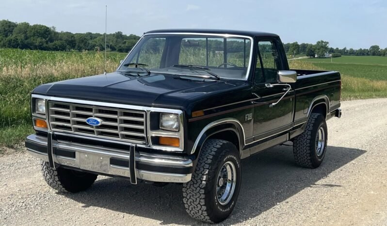 This 1984 Ford F-150 XLT 4×4 is a regular-cab short-bed pickup that is finished in black over gray upholstery and powered by a 302ci V8 mated to a three-speed automatic transmission and a dual-range transfer case. Equipment includes 15″ Cragar wheel, power steering, power-assisted brakes, chrome-accented bumpers, a sliding rear window, air conditioning, cruise control, and an AM/FM stereo.