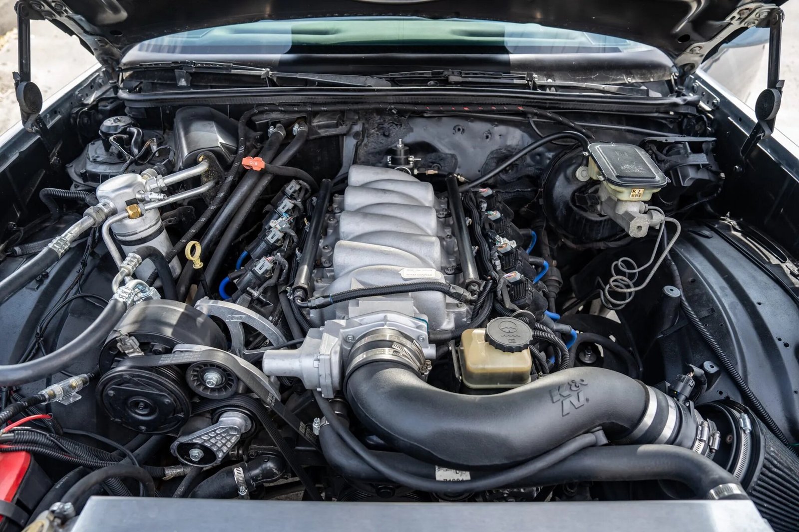 The replacement 6.0-liter L96 Vortec V8 was installed and is equipped with a Speedmaster intake manifold, JEGS fuel rails, a K&N cold-air intake, an aluminum radiator, and an ICT Billet air conditioning compressor relocation kit.