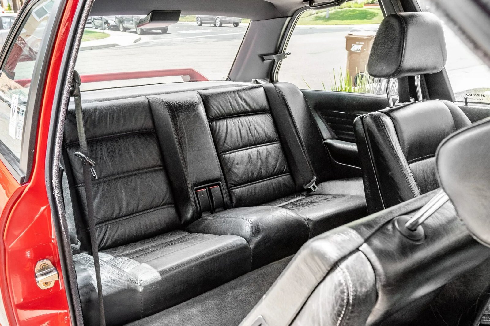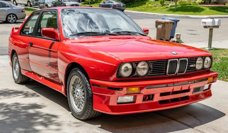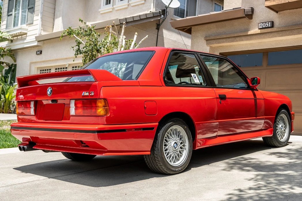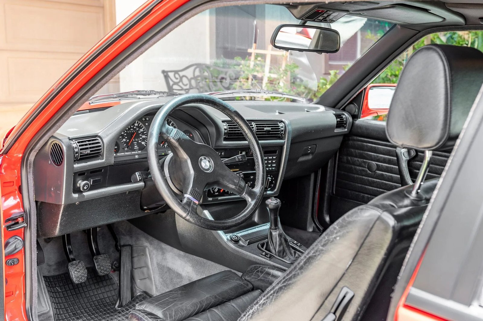 This 1988 BMW M3 is finished in red over a black leather interior and is powered by a 2.3-liter inline-four paired with a five-speed manual transmission and limited-slip differential.