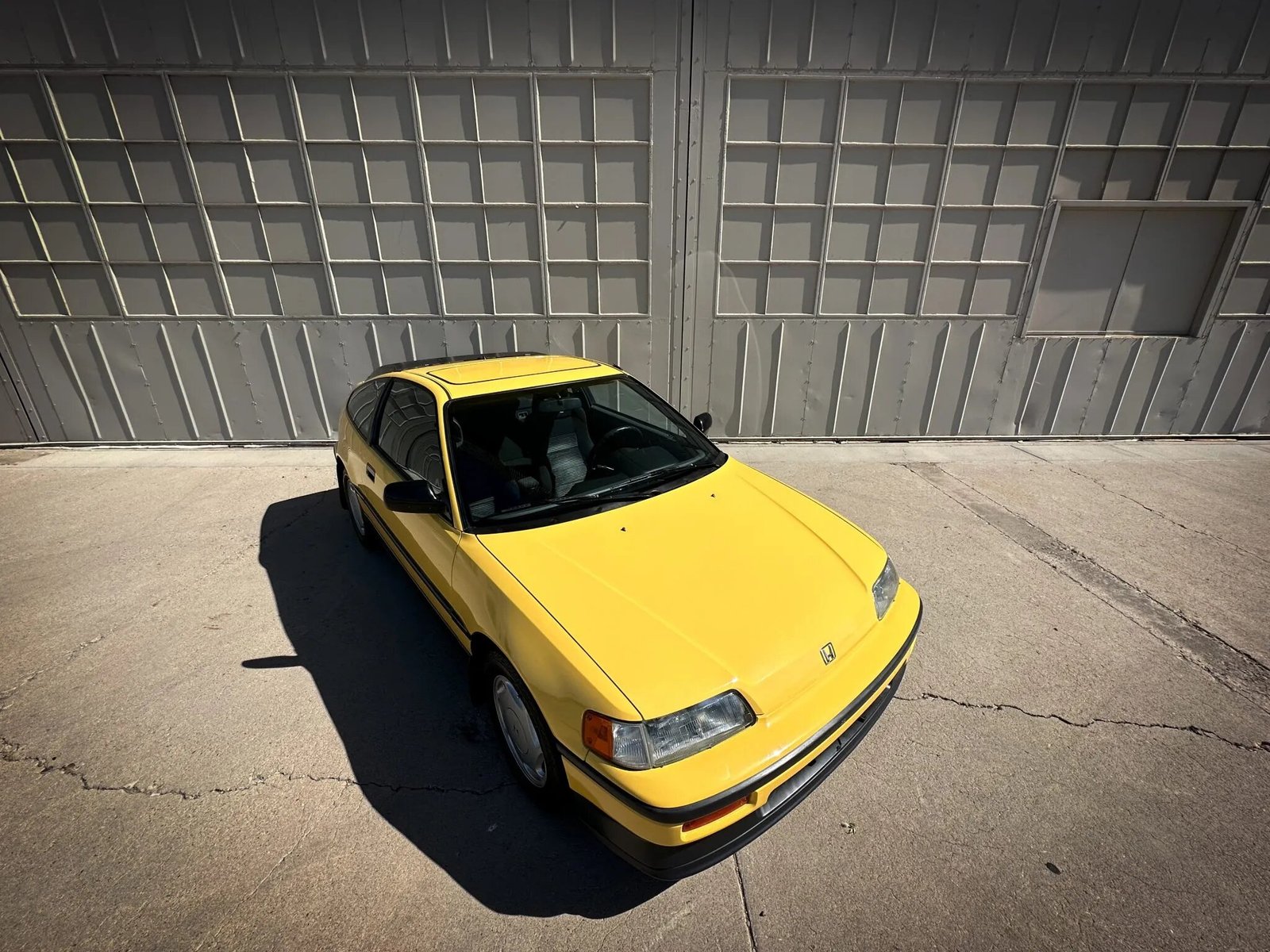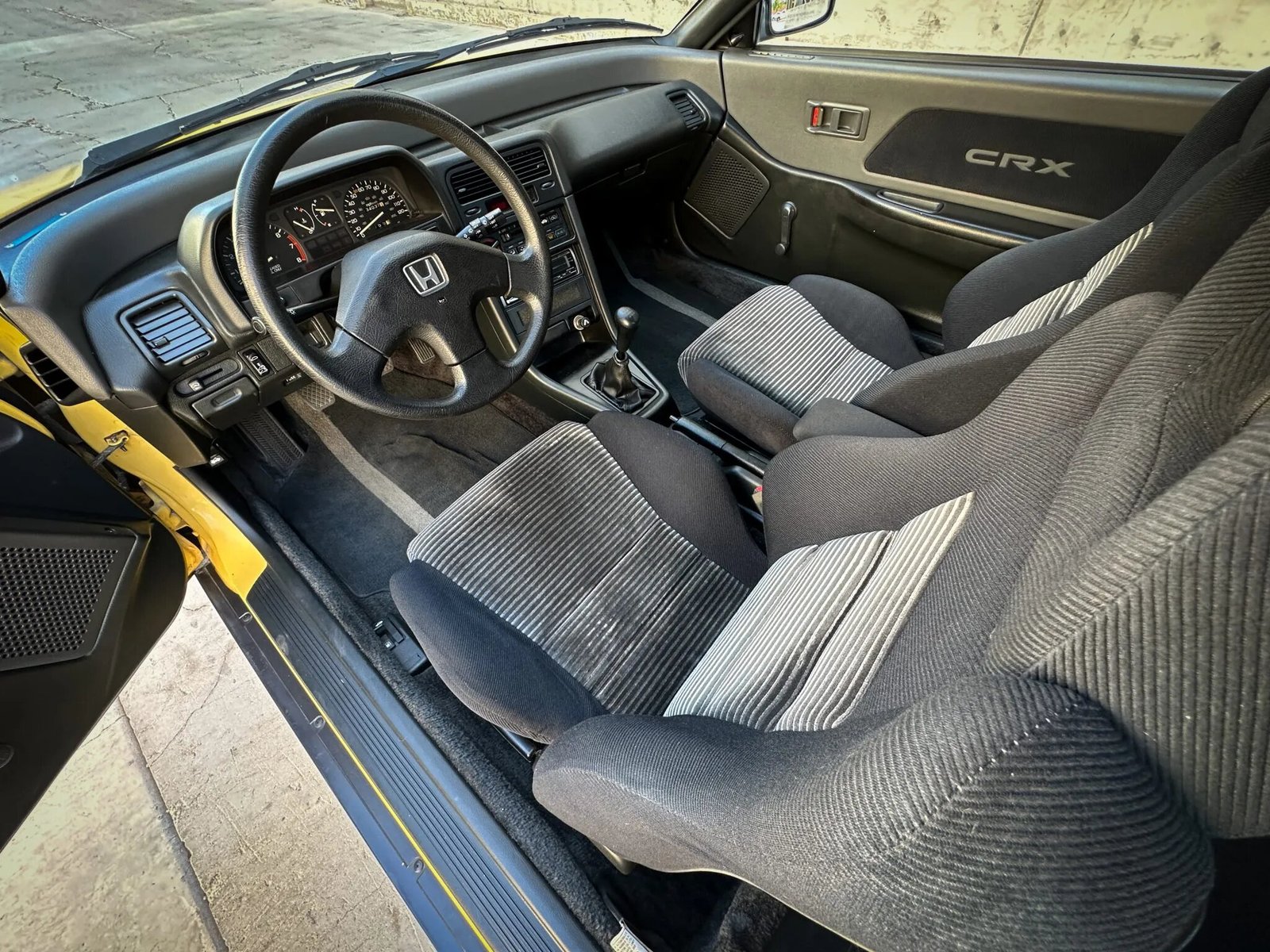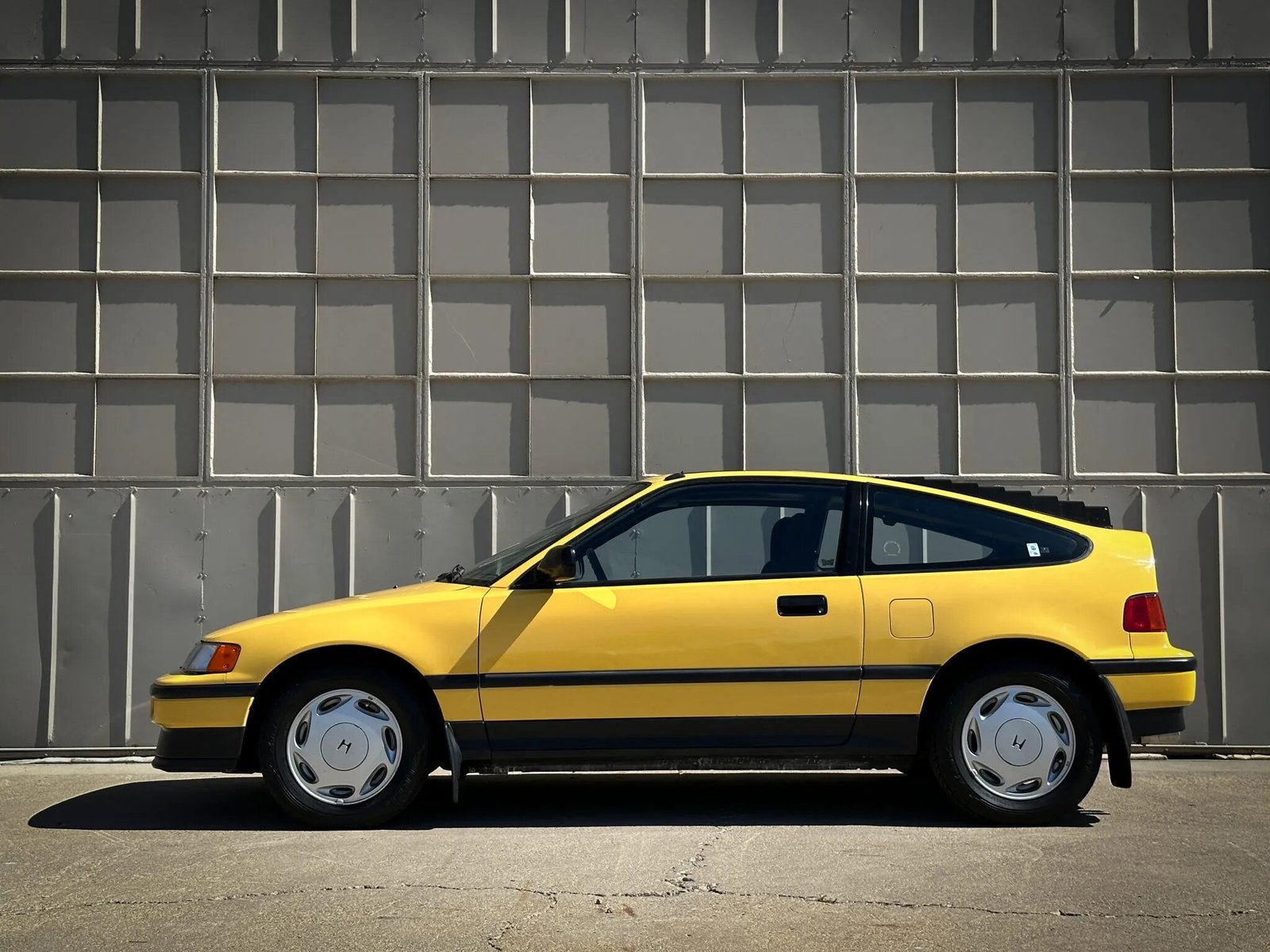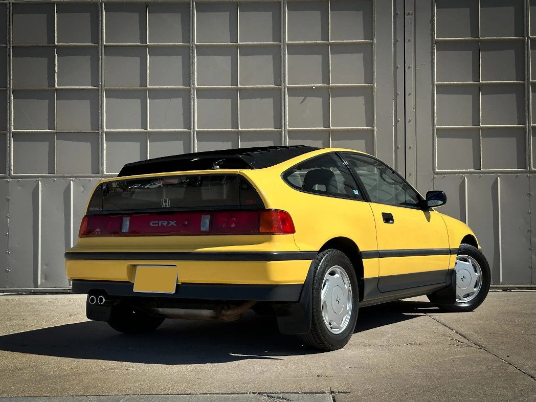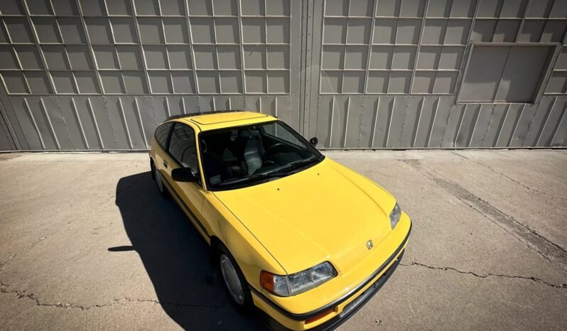 This 1988 Honda CRX Si is finished in yellow over black cloth upholstery, the car is powered by a 1.6-liter inline-four paired with a five-speed manual transmission. Equipment includes a power sunroof, a front lip spoiler, rear window louvers, 14″ alloy wheels, air conditioning, and an Alpine CD stereo linked to a JL Audio subwoofer.