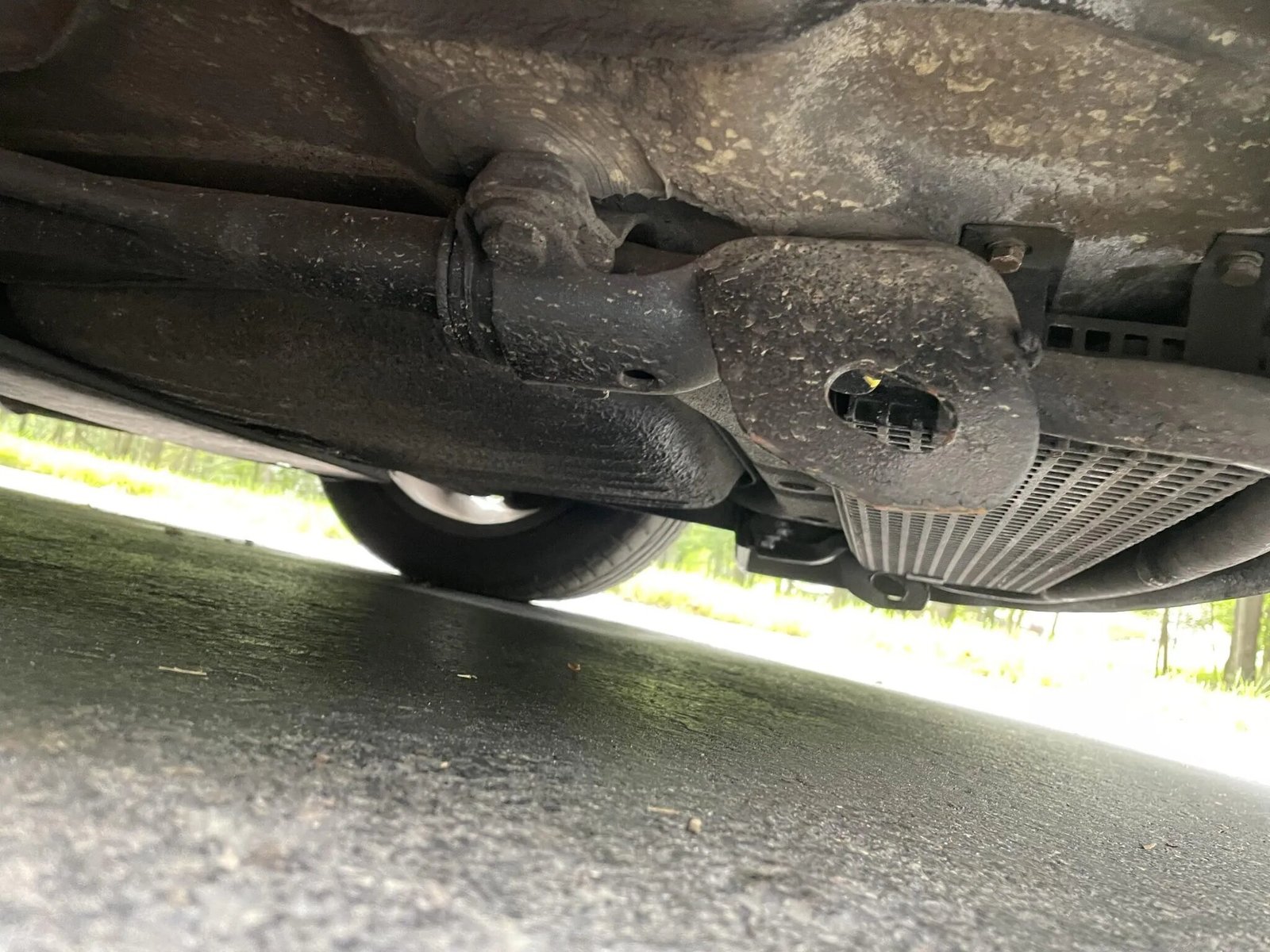 Staggered-width 16″ Fuchs alloy wheels feature polished lips and are mounted with Bridgestone Potenza Front Fuzion Rear tires measuring 225/50 up front and 245/45 in the rear. Braking is handled by four-wheel cross-drilled and ventilated discs. The passenger-side rear axle and outer tie rod end were replaced in 2024.