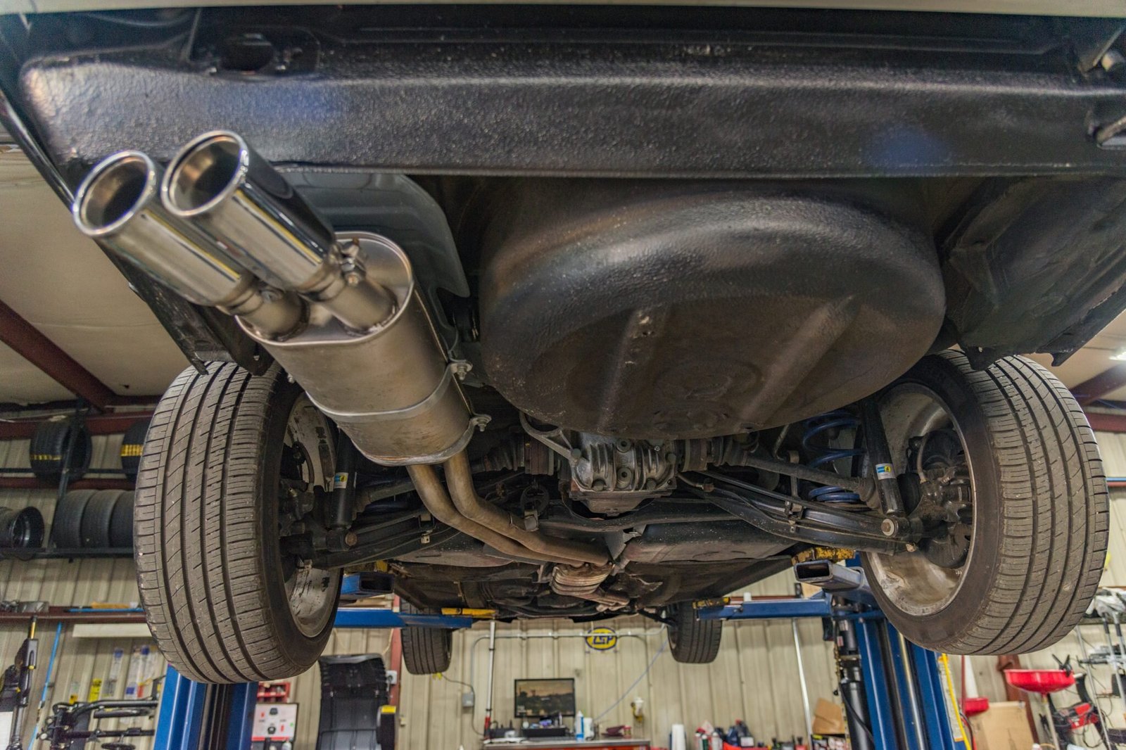 That Bilstein dampers, H&R springs, Garagistic control arm bushings, and a rear subframe with adjustable control arm mounts are fitted, the work included replacing the wheel bearings and brake pads and lines.