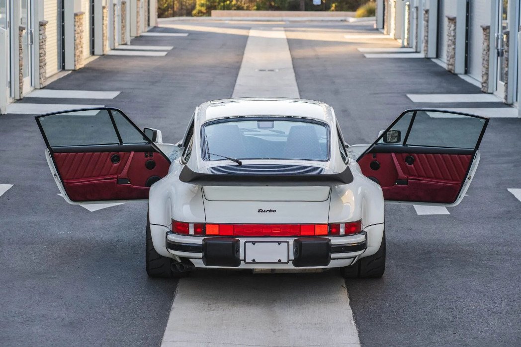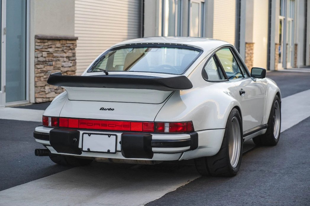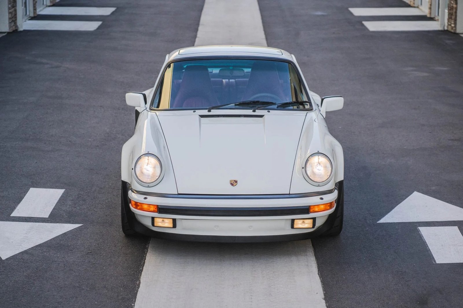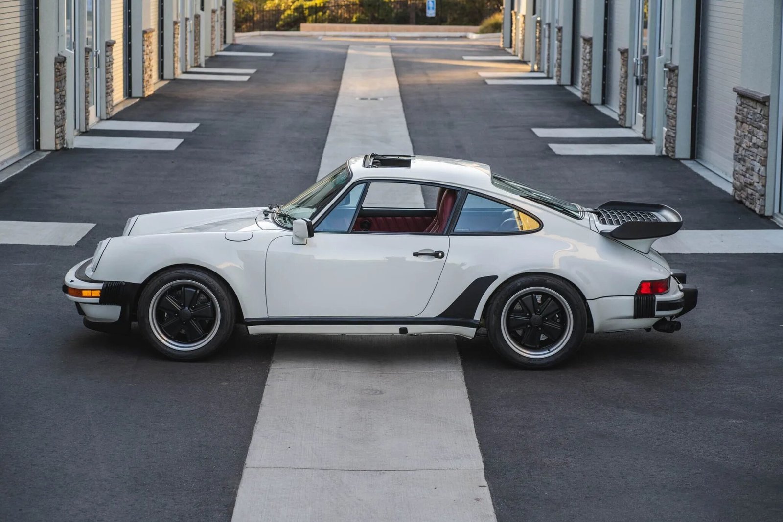 This 1989 Porsche 911 Turbo coupe is finished in white over red, and its turbocharged 3.3-liter flat-six and five-speed G50 manual transaxle are numbers-matching.