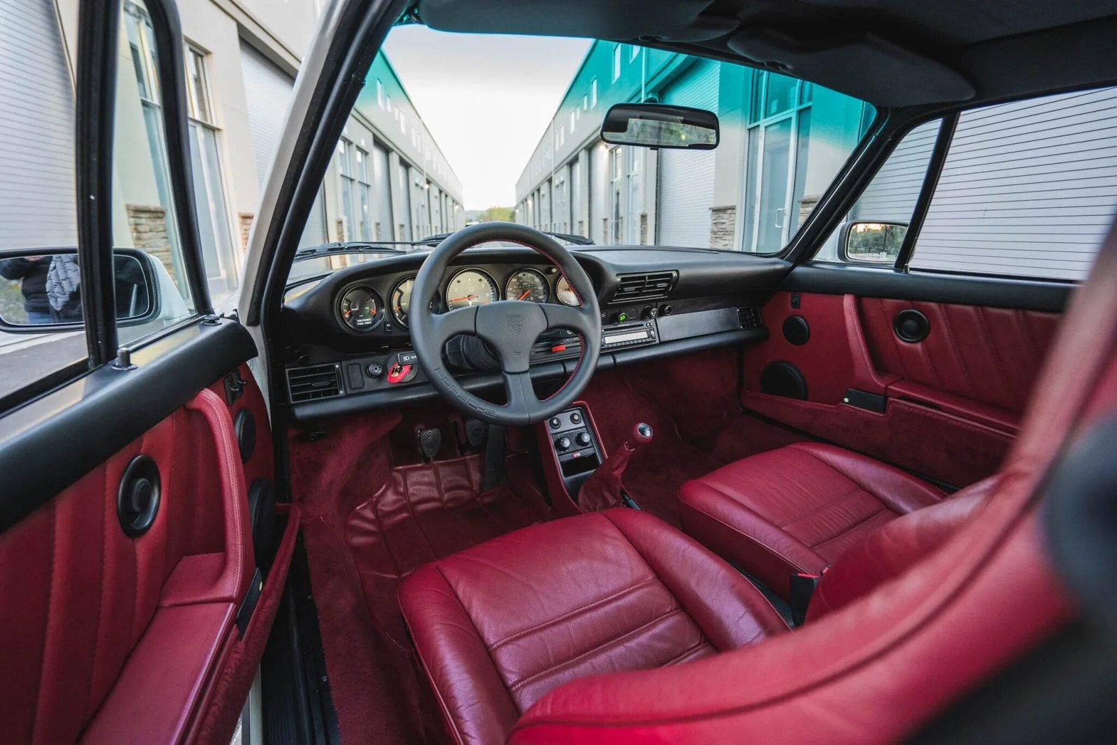The dashboard is trimmed in black, and a CD player from a 993-generation 911 has been installed.