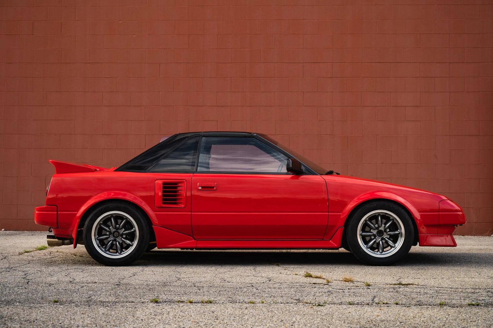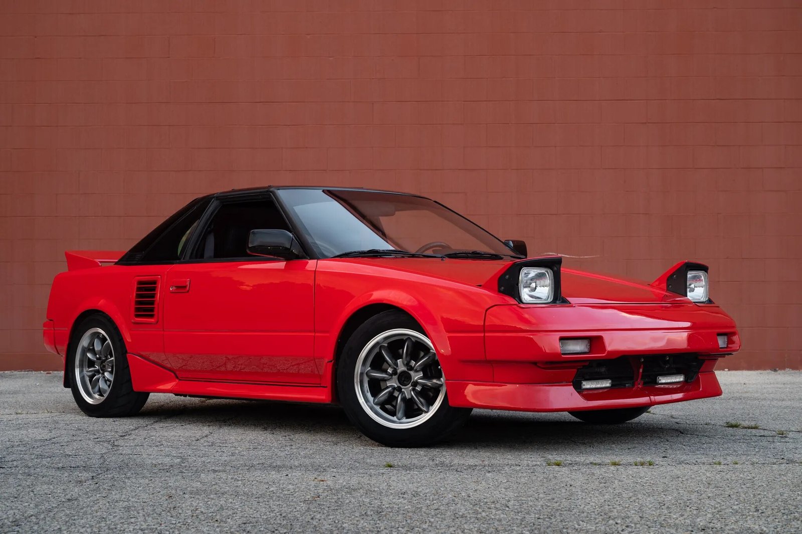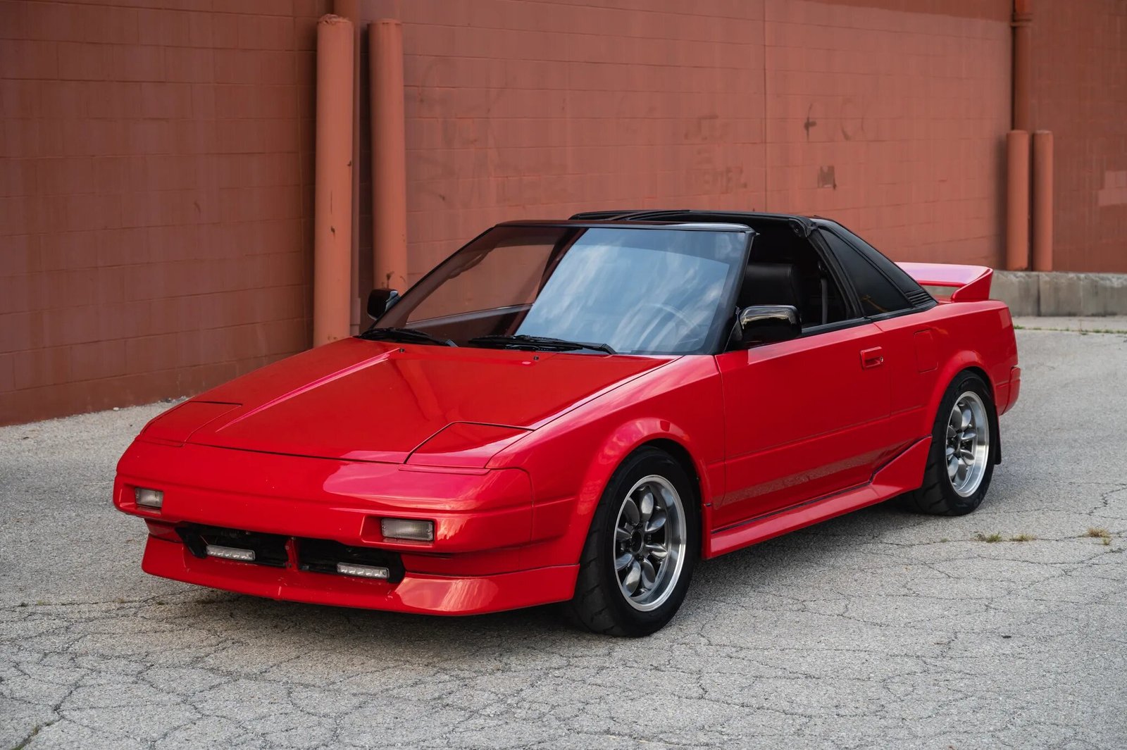 This 1989 Toyota MR2 have been refurbished and modified in 2017. Subsequent work included enlarging the replacement 3SGTE inline-four to 2.3-liters as well as installing a tuned ECU, a flex-fuel sensor, and aftermarket suspension components. The car is finished in Super Red with a black roof and mirrors over black upholstery and is equipped with a five-speed manual transaxle, a limited-slip differential, 15″ alloy wheels, four-wheel disc brakes, removable roof panels, LED interior and exterior lights, power accessories, and a touchscreen Pioneer stereo connected to MB Quart speakers and Rockford Fosgate subwoofers.