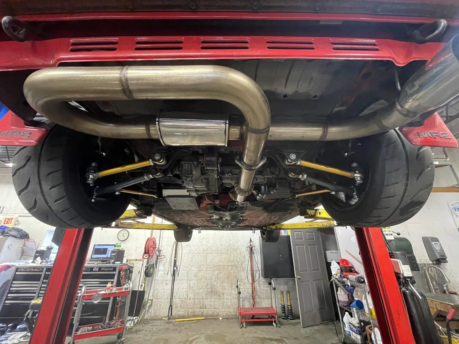 The factory engine was replaced with a 3SGTE turbocharged inline-four has been enlarged to 2.3-liters using forged pistons and connecting rods along with the following: GT2876 hybrid turbo, 1000cc injectors and a Speed-Source fuel rail, Walbro fuel pump, Bell intercooler mounted under the car, Aluminum radiator trim, Flex-fuel sensor and EMU engine management, Relocated battery to rear trunk, Tuned by ATS Racing.
