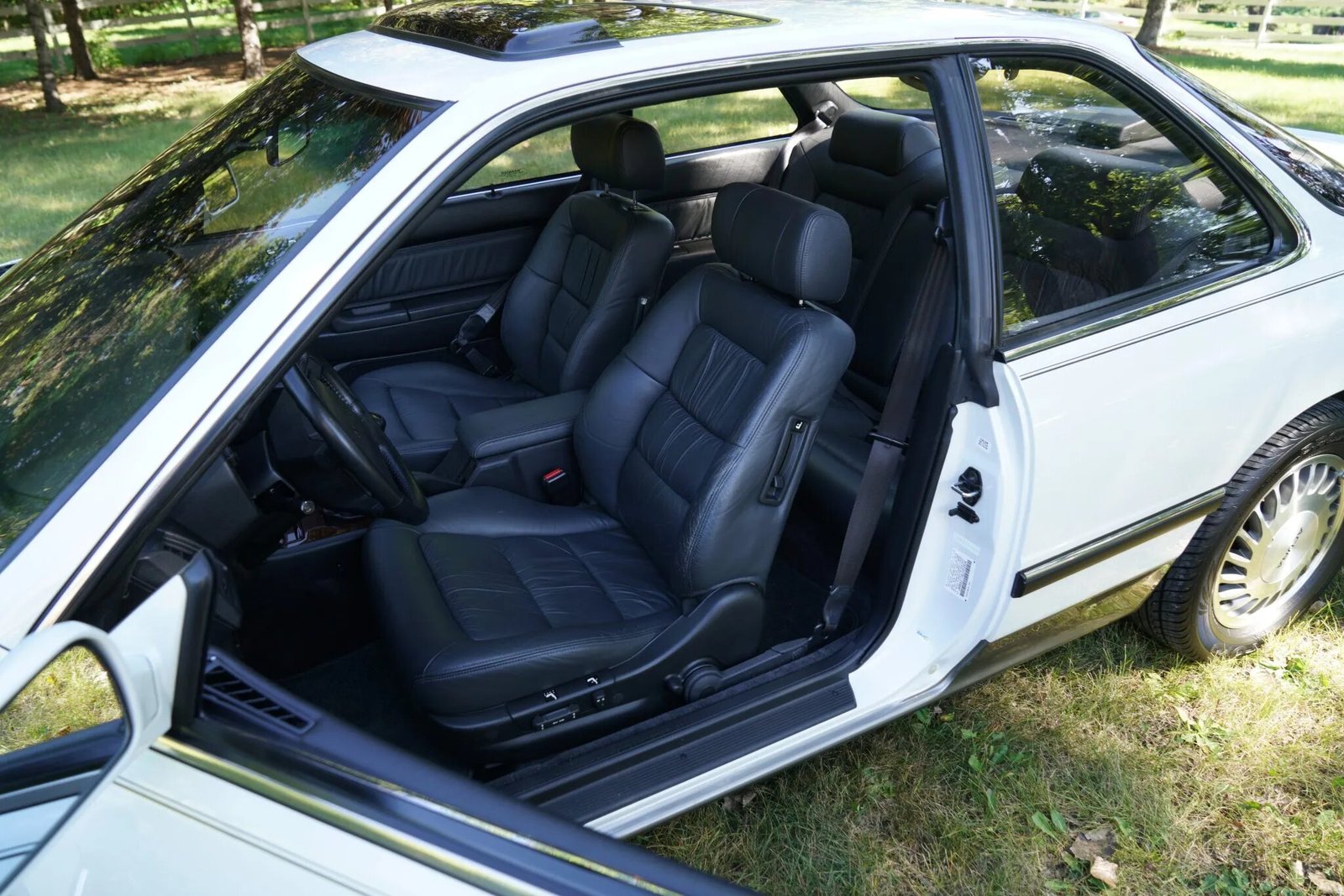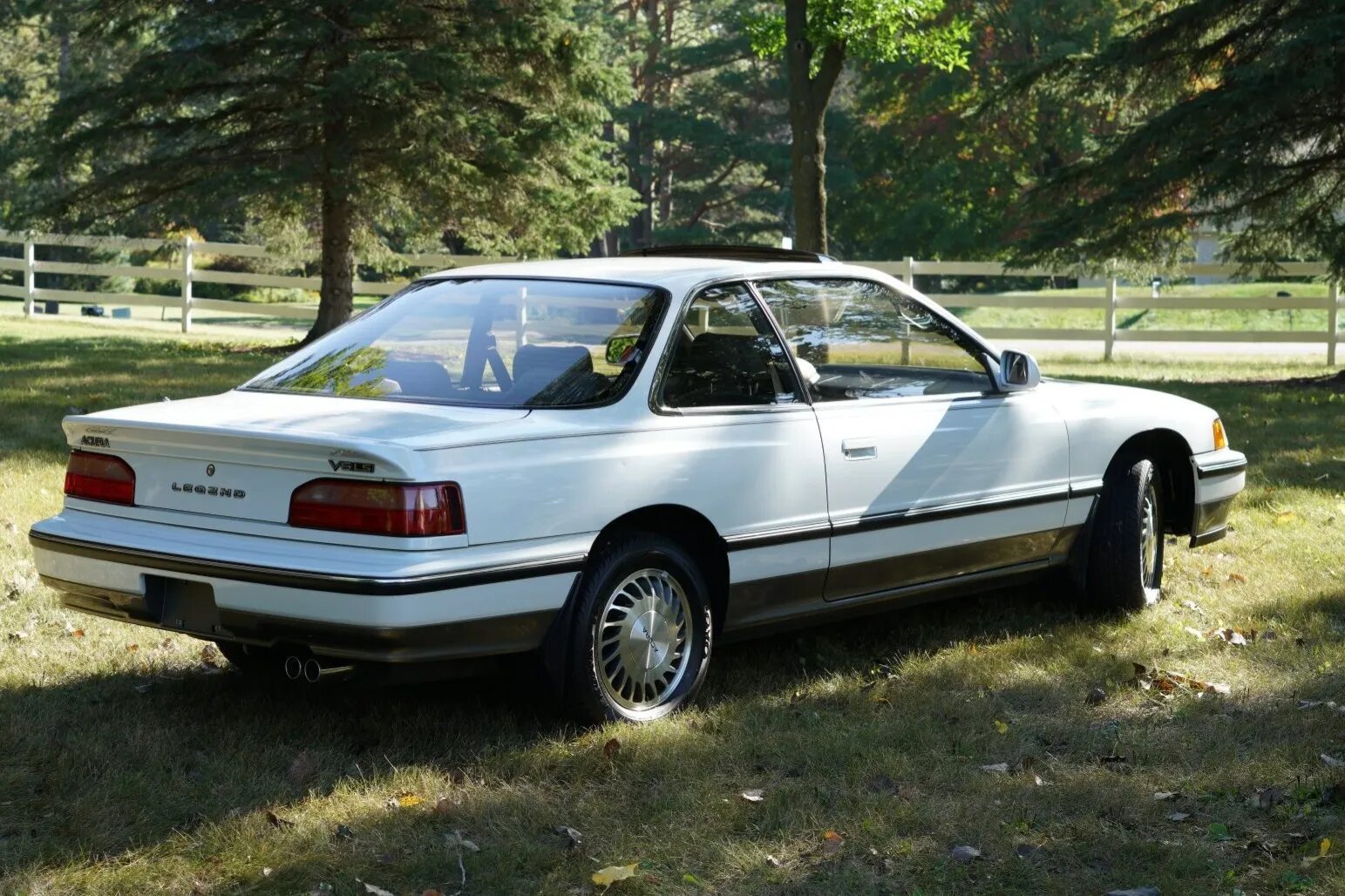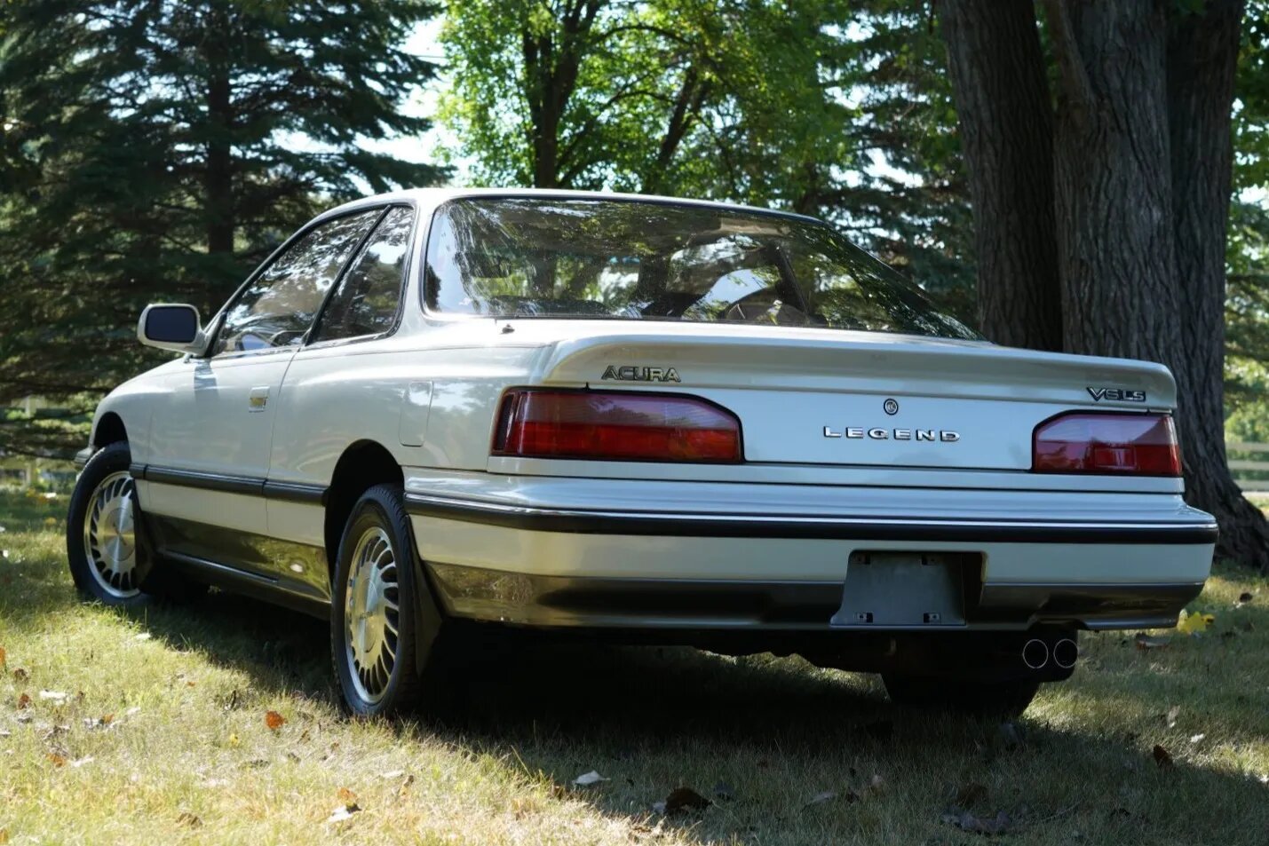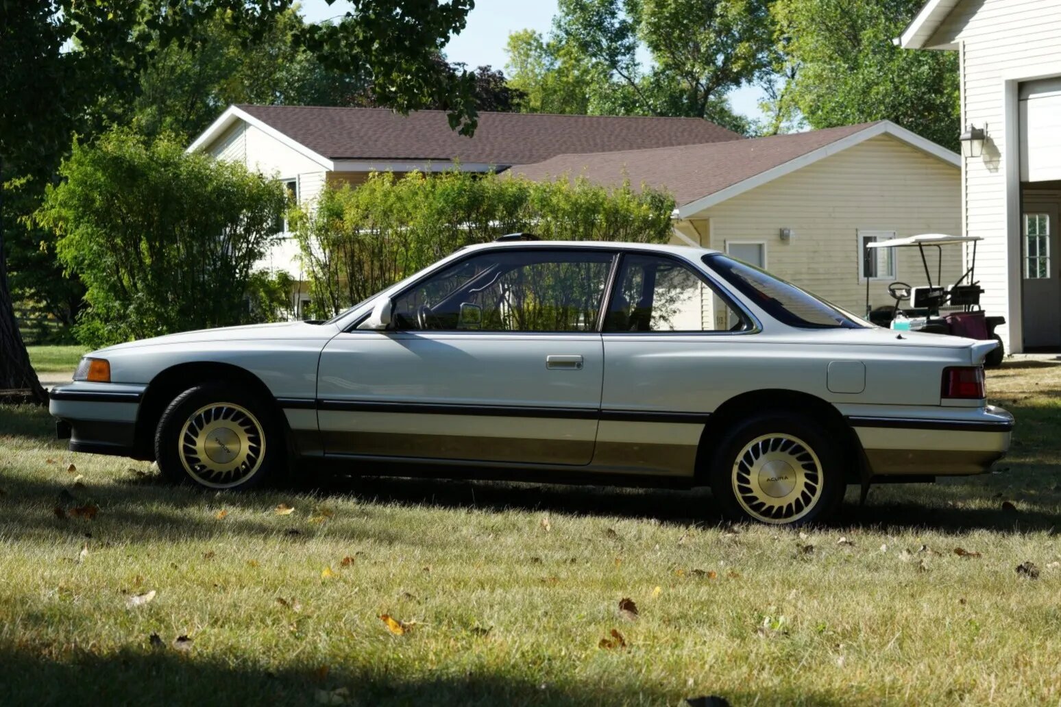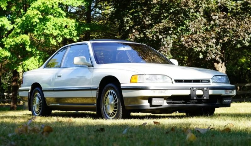 This 1990 Acura Legend LS Coupe is powered by a fuel-injected 2.7-liter V6 paired with a five-speed manual transaxle and is finished in two-tone Sirius White Pearl and Asturias Gray Metallic over black leather upholstery. Equipment includes a glass sunroof, 15″ alloy wheels, and a rear spoiler along with automatic climate control, power-adjustable front seats, and power windows and door locks.