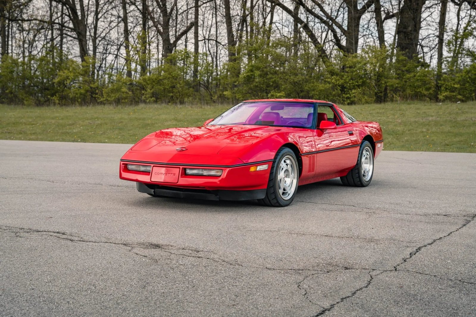 This example is finished in Bright Red and features pop-up headlights, fog lamps, a removable fiberglass roof panel, fender aero-vents, and power-adjustable and heated side mirrors.