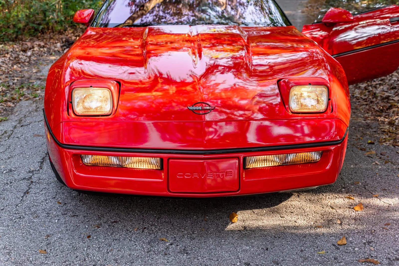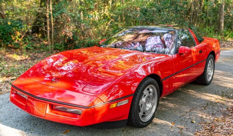 This example is finished in Bright Red and features pop-up headlights, fog lamps, a removable fiberglass roof panel, a removable transparent roof panel, fender aero-vents, and power-adjustable and heated side mirrors.
