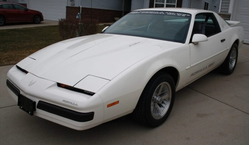 This 1990 Pontiac Firebird Formula is finished in white over gray cloth and powered by a 5.7-liter V8 paired with a four-speed automatic transmission.