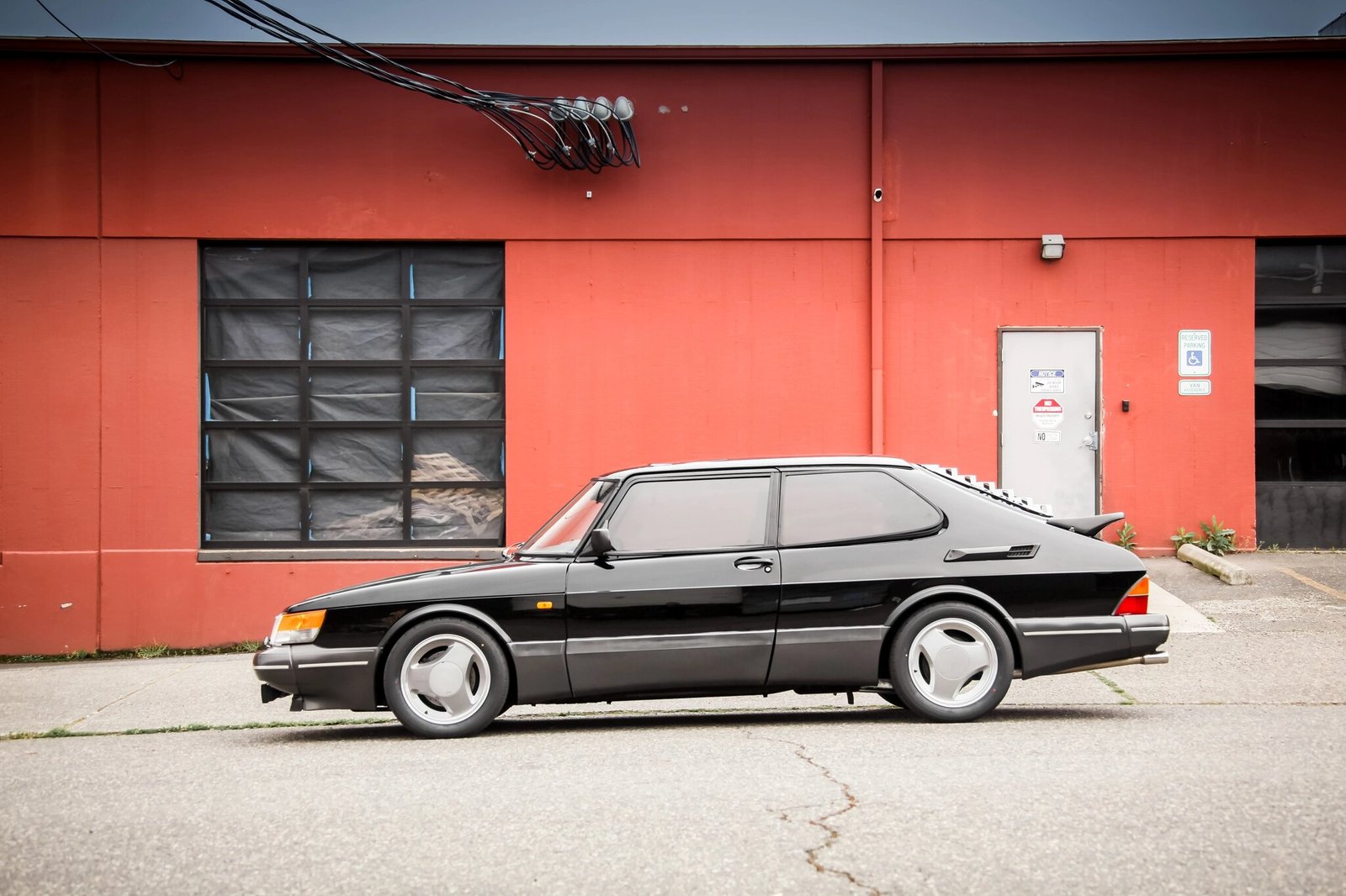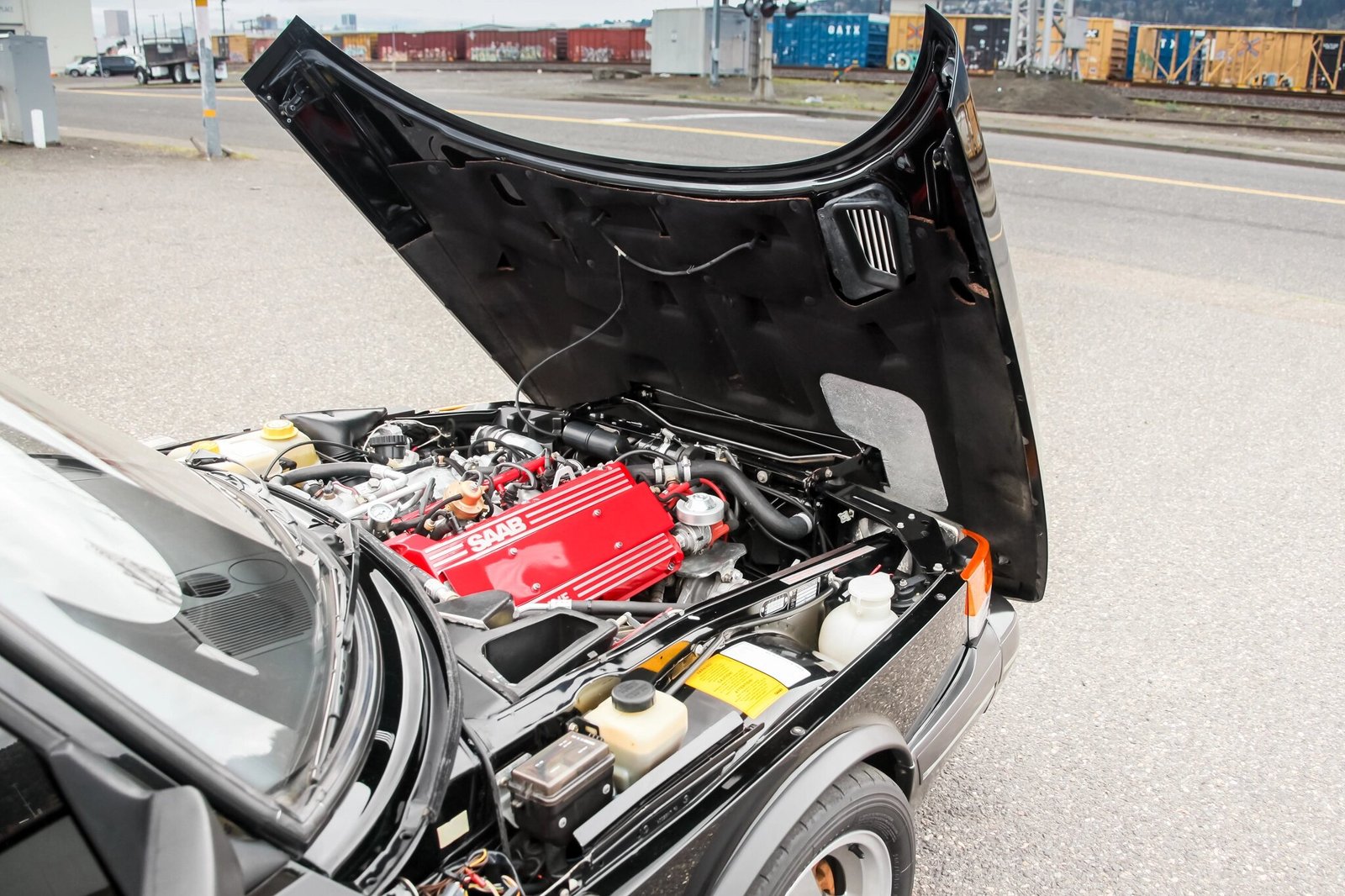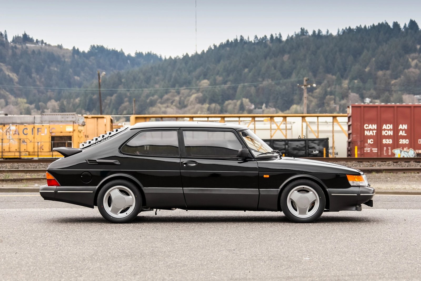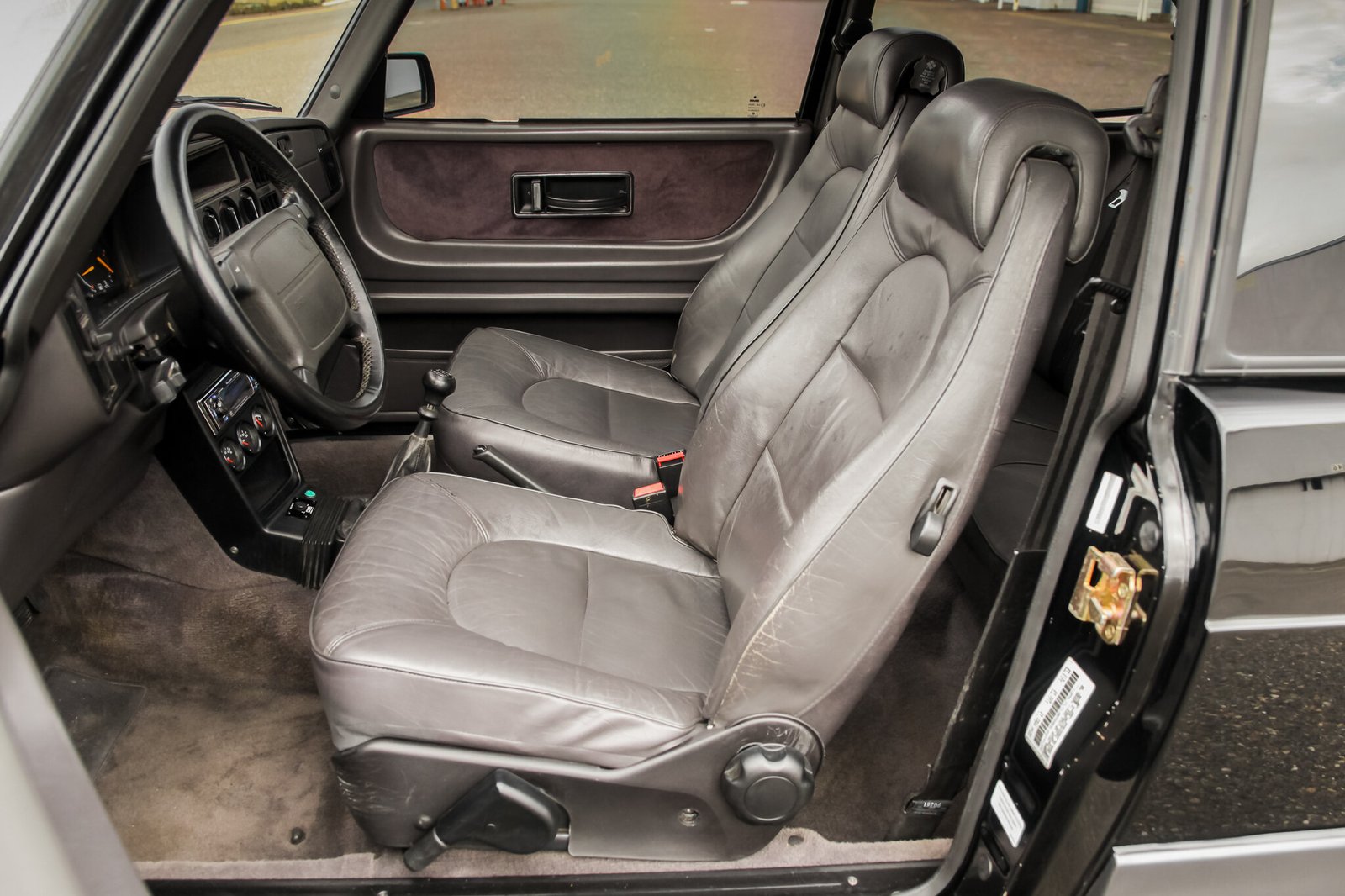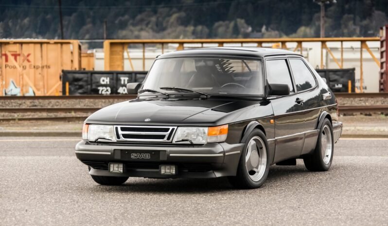This 1991 Saab 900 SPG is finished in black over gray leather and is powered by a turbocharged 2.0-liter inline-four mated to a five-speed manual transaxle.