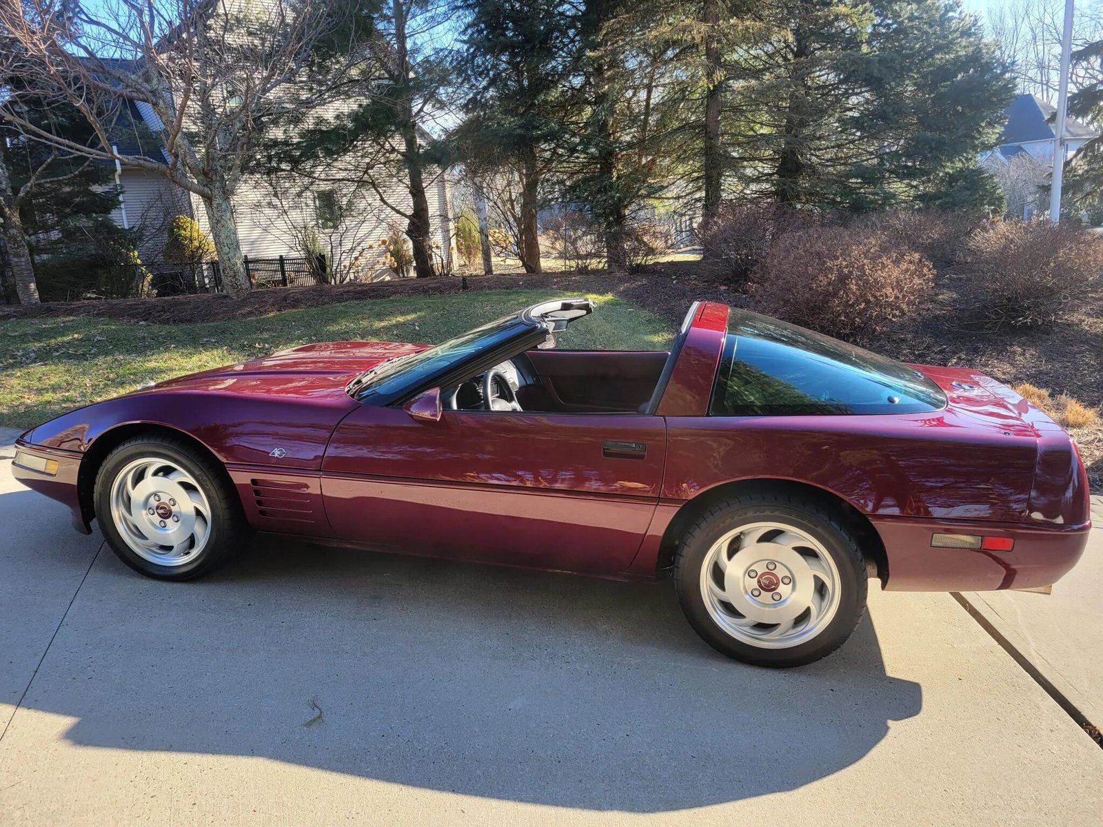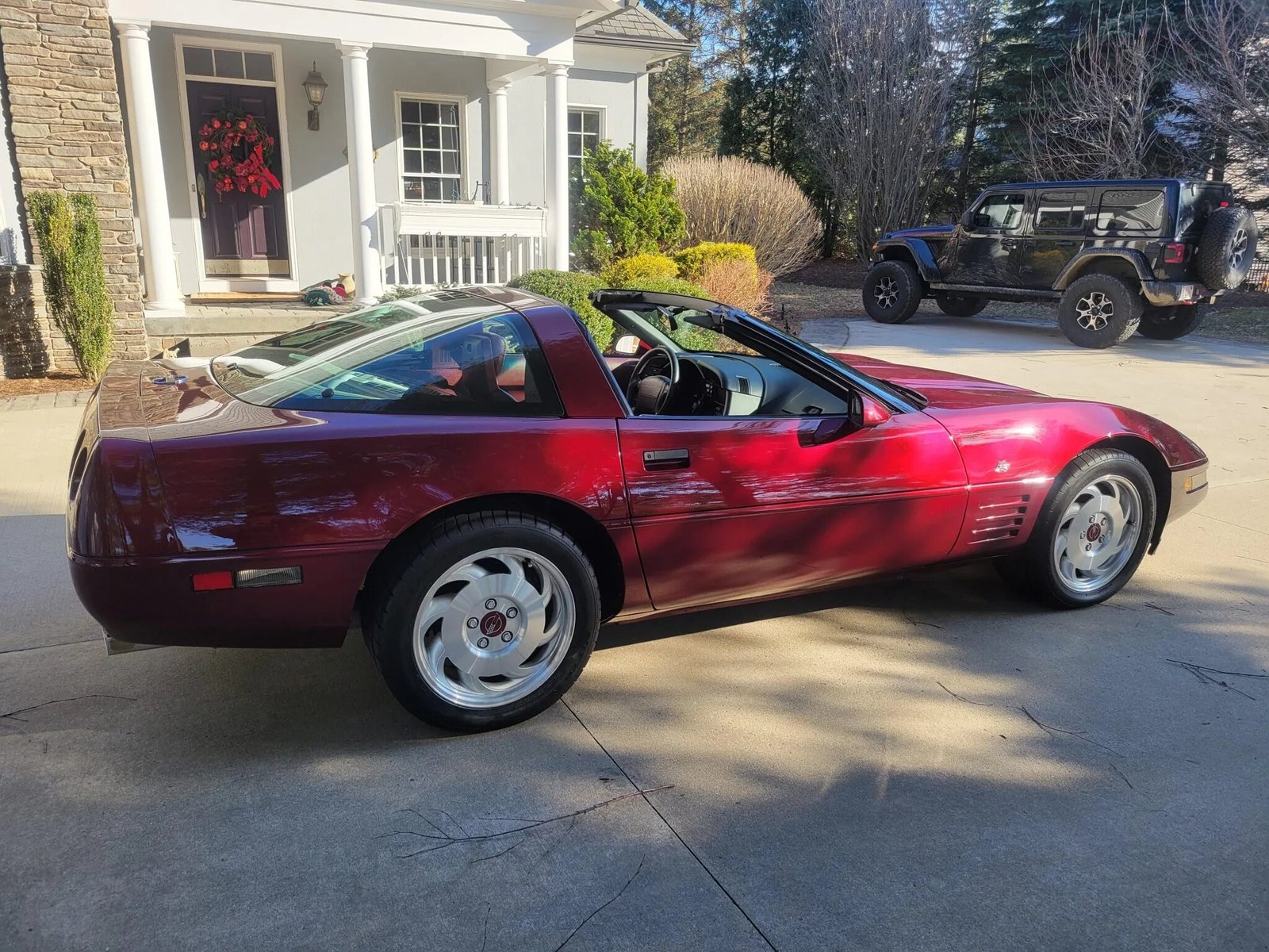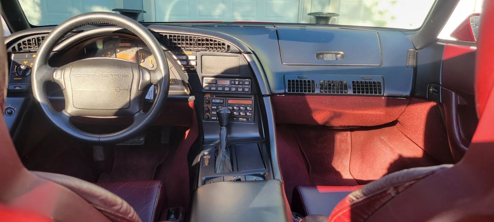 This 1993 Chevrolet Corvette 40th Anniversary Edition is finished in Ruby Red Metallic over matching leather upholstery and is powered by a 5.7-liter V8 paired with a four-speed automatic transmission with overdrive.