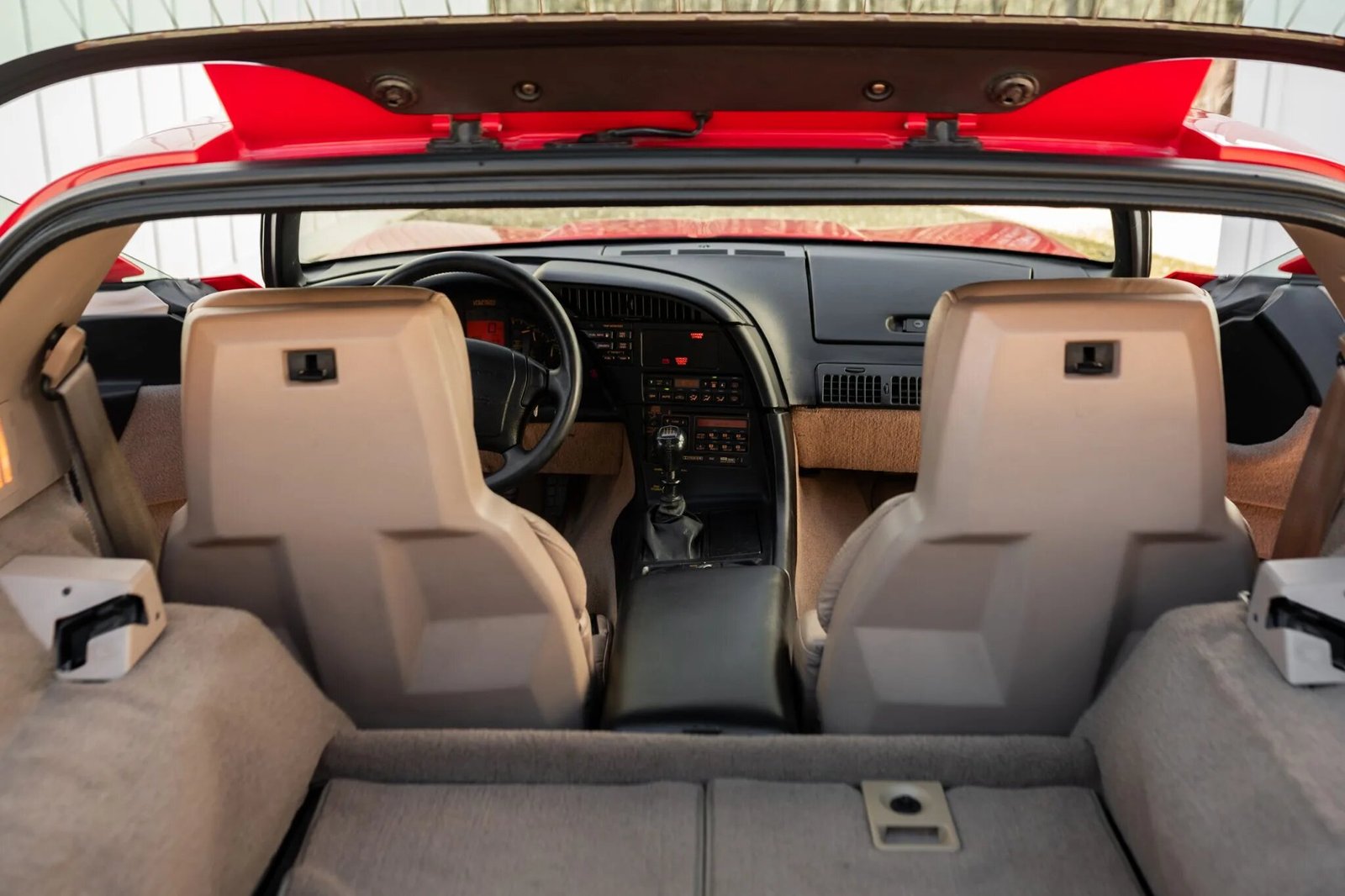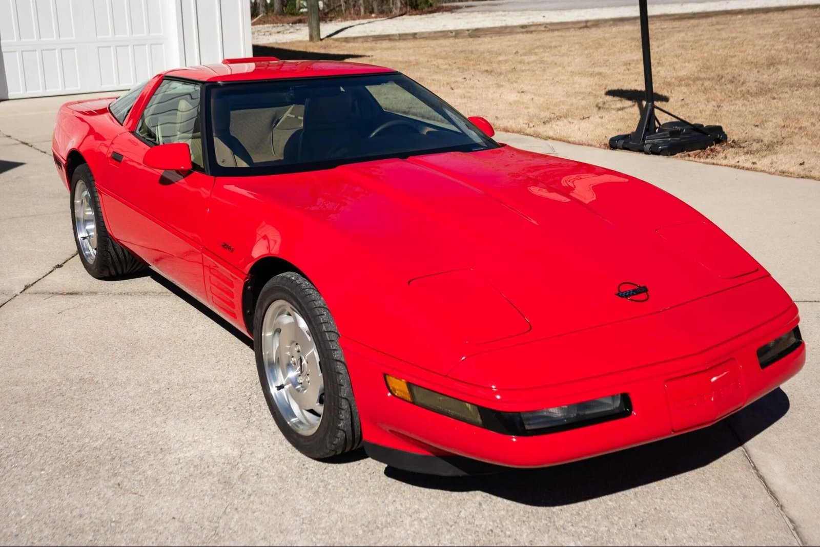This 1993 Chevrolet Corvette ZR-1 is one of 59 finished in Torch Red out of 448 produced total for the model year.The car is powered by a 5.7-liter LT5 V8 paired with a six-speed manual transmission, and other equipment includes a limited-slip differential, removable body-colored and glass roof panels, FX3 selective ride and handling, power-adjustable beige leather sport seats, automatic climate control, and a Delco/Bose stereo. The ZR–1 featured widened rear fenders, a revised rear valance, and unique badging compared to the standard C4.