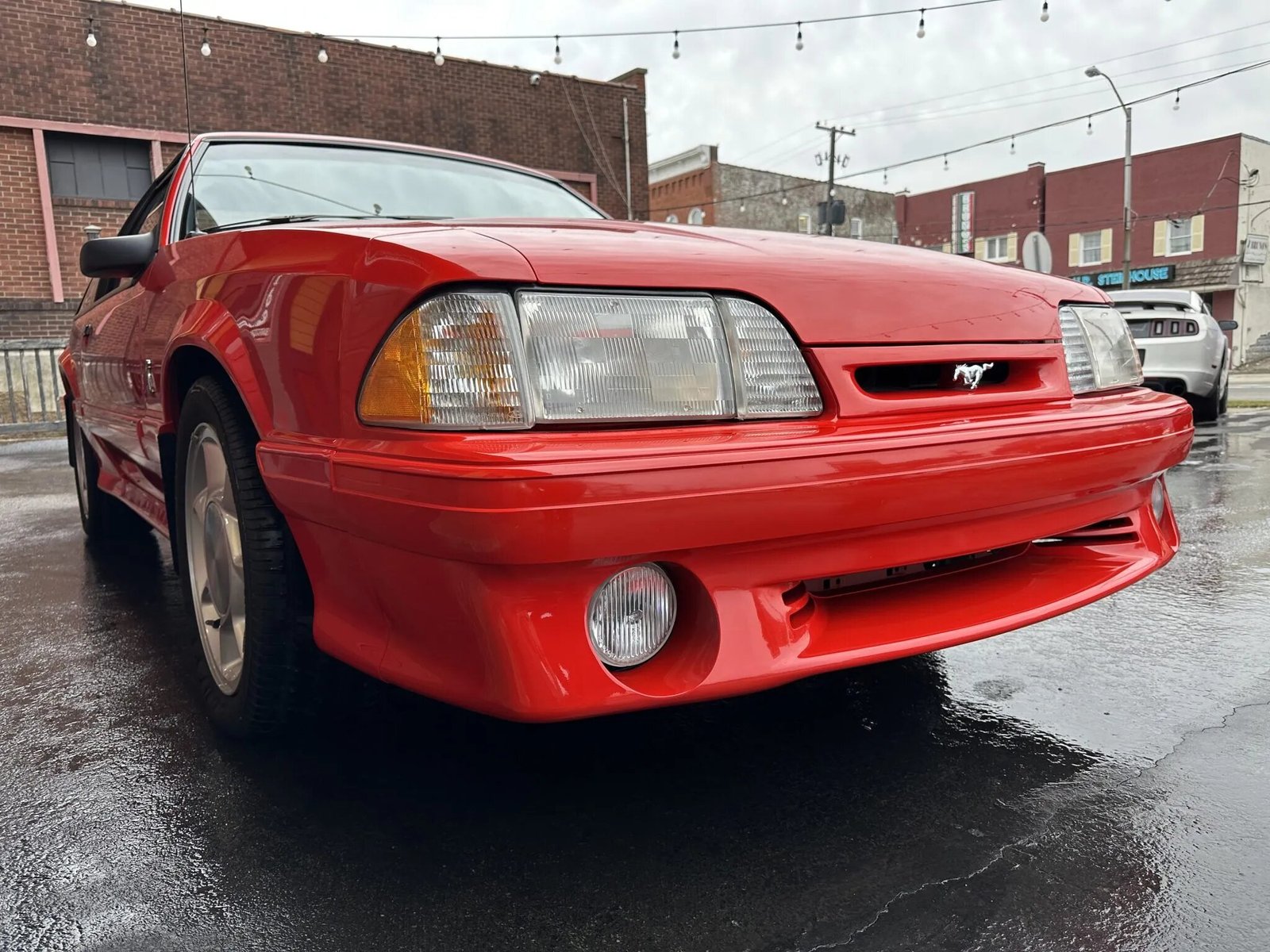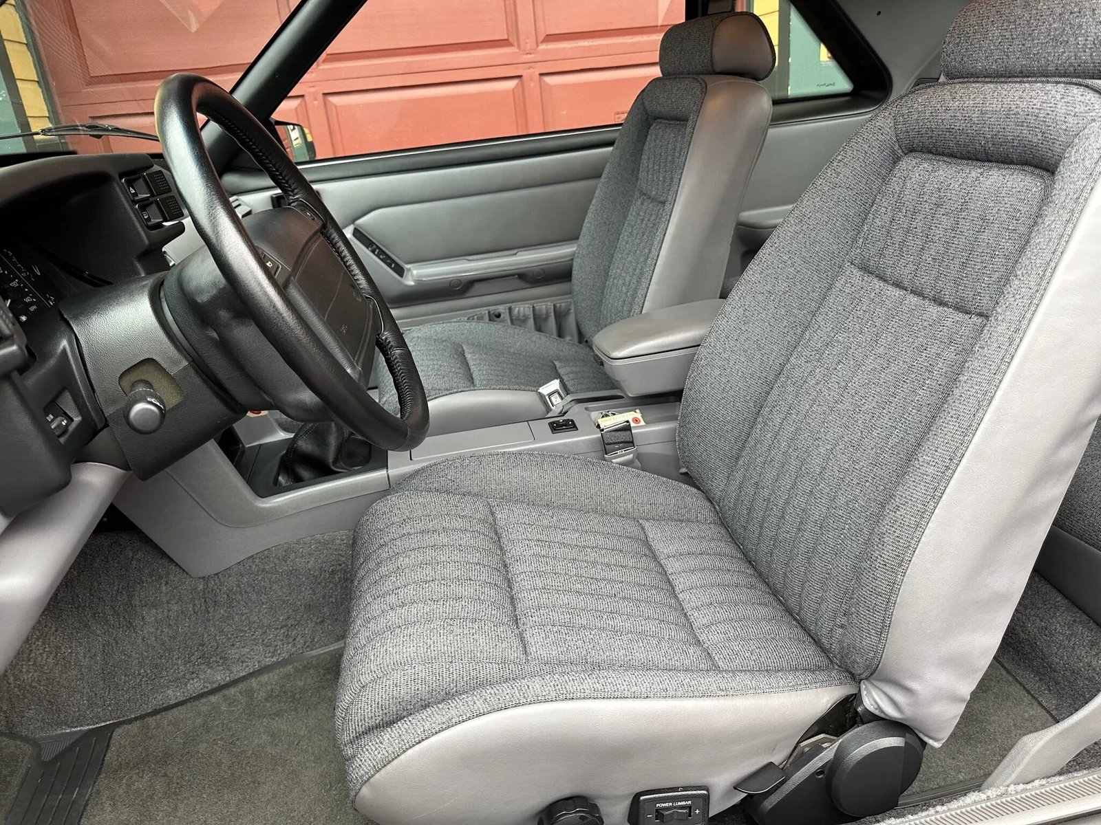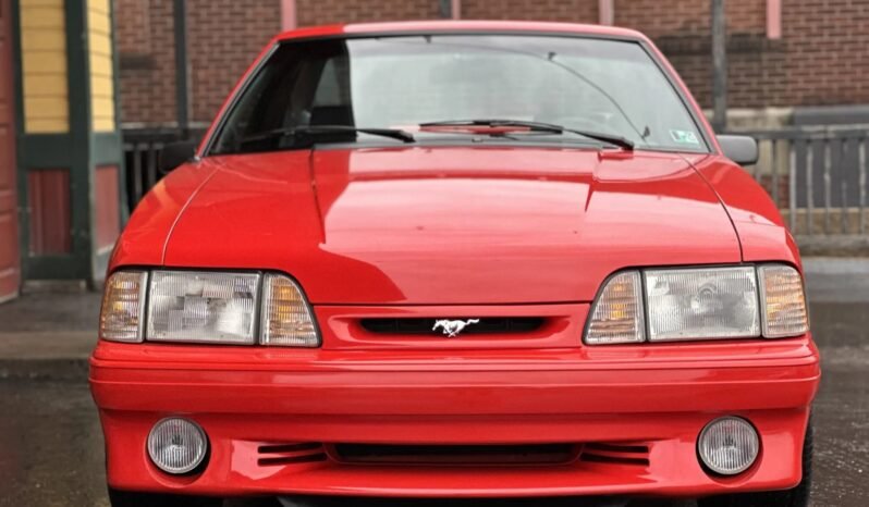 This 1993 Ford Mustang SVT Cobra is powered by a 302ci V8 linked with a five-speed manual transmission and a limited-slip differential. Finished in Vibrant Red over Opal Grey cloth and vinyl, the car is equipped with 17″ turbine-style alloy wheels, a rear spoiler, fog lights, front sport seats with adjustable lumbar, a cassette stereo, air conditioning, and power windows, door locks, and mirrors. The SVT Cobra received a revised rear wing, bumper covers, Mustang SVO-style taillights, and special badging that differentiated it from the contemporary Mustang.
