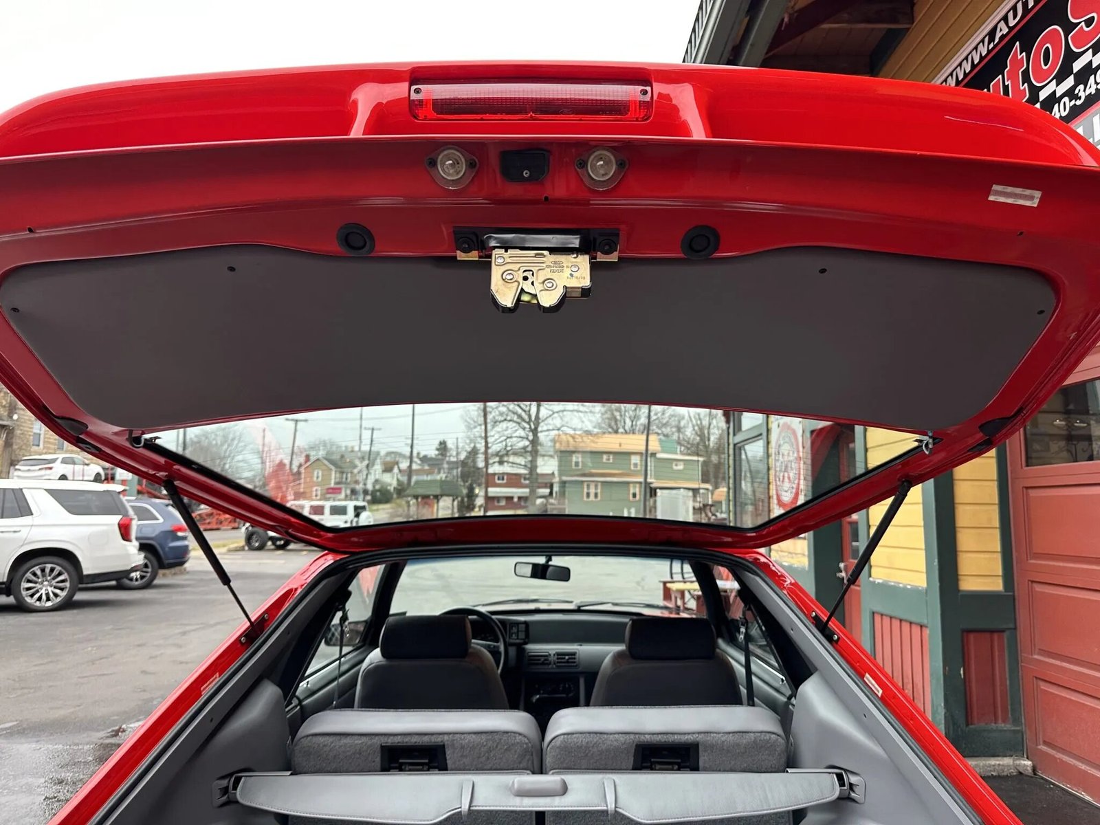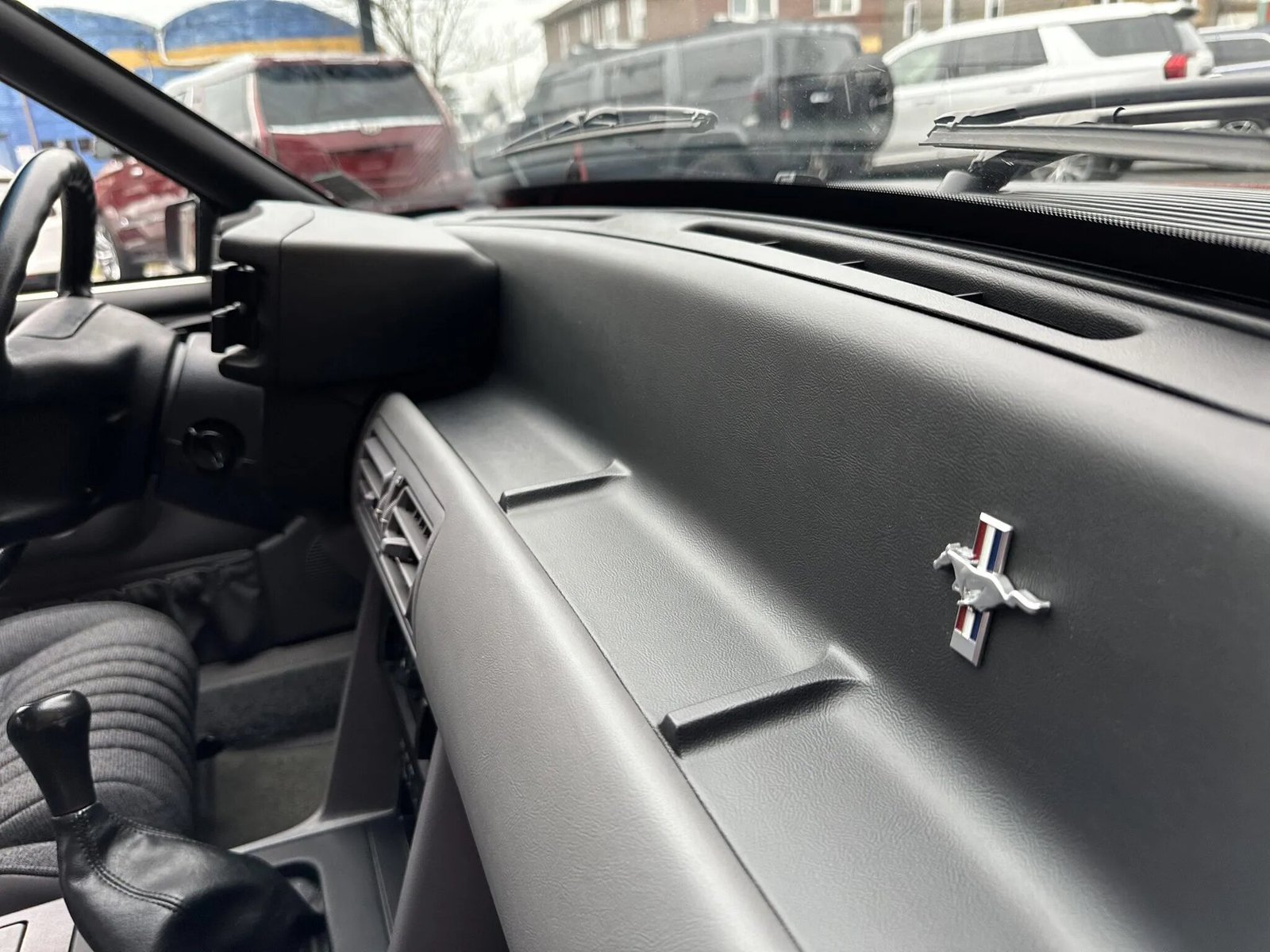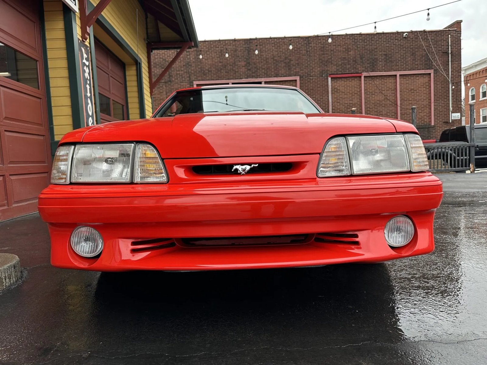 This 1993 Ford Mustang SVT Cobra is powered by a 302ci V8 linked with a five-speed manual transmission and a limited-slip differential. Finished in Vibrant Red over Opal Grey cloth and vinyl, the car is equipped with 17″ turbine-style alloy wheels, a rear spoiler, fog lights, front sport seats with adjustable lumbar, a cassette stereo, air conditioning, and power windows, door locks, and mirrors. The SVT Cobra received a revised rear wing, bumper covers, Mustang SVO-style taillights, and special badging that differentiated it from the contemporary Mustang.