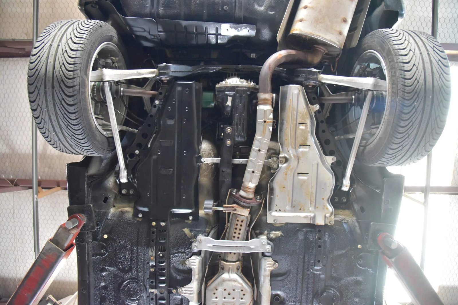 Five-spoke 16″ alloy wheels are wrapped in 225/50 General Altimax HP tires that need to be replaced due to old age.