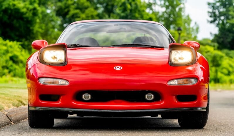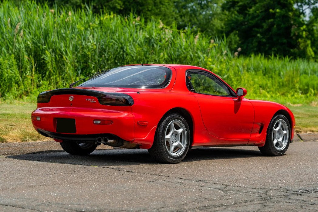 The car is finished in Vintage Red over black leather upholstery, and power is provided by a twin-turbocharged 1.3L Wankel rotary mated to a five-speed manual transmission and a Torsen limited-slip differential.