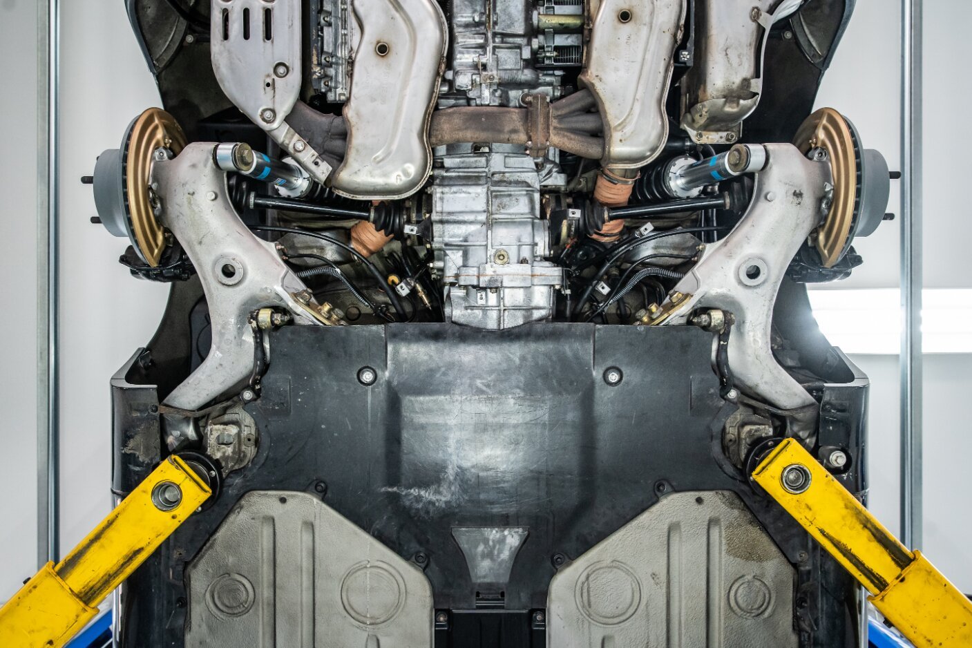 The wheels were refinished in preparation for the sale, and suspension modifications include installation of a Brey-Krause strut tower brace and Bilstein adjustable shocks with H&R springs.