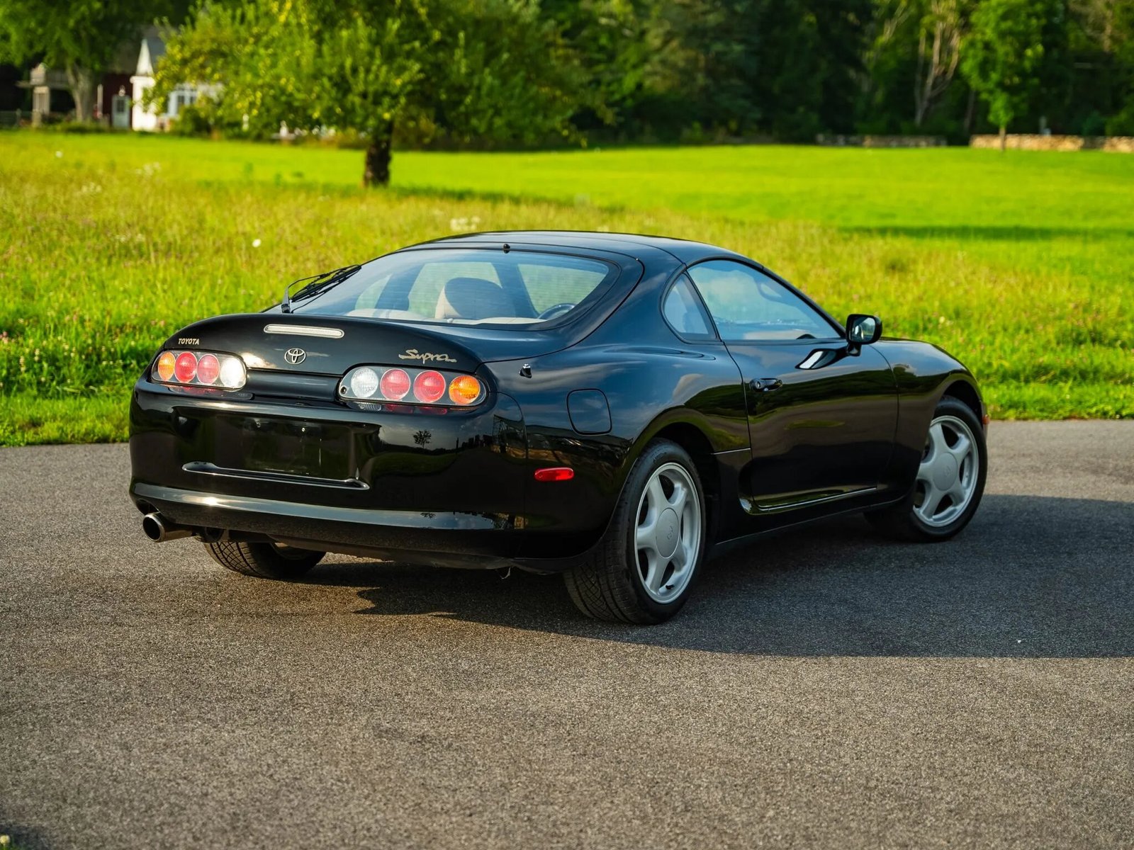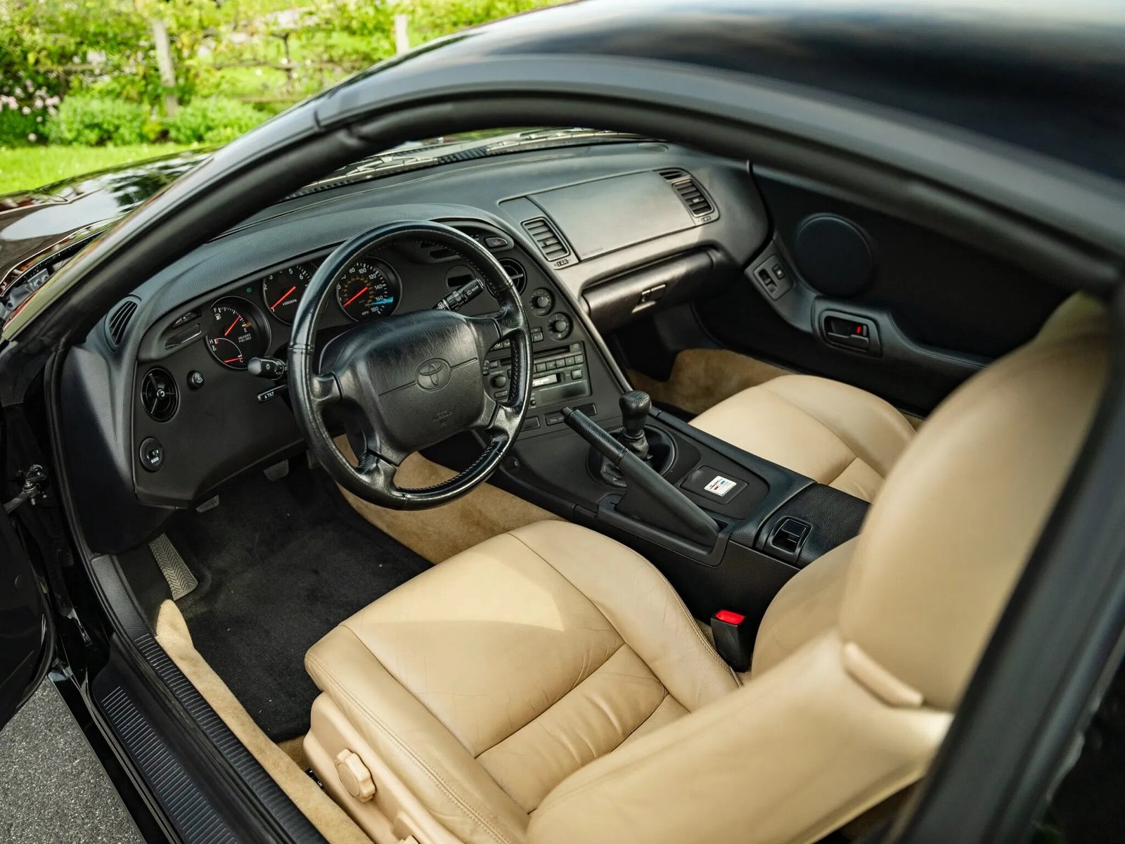 This 1993 Toyota Supra Turbo it is powered by a twin-turbocharged 3.0L inline-six paired with a six-speed manual transmission and is finished in black over Ivory leather. Equipment includes a limited-slip differential, silver-finished 17″ five-spoke wheels, a removable roof panel, fog lights, a power-adjustable driver’s seat, a CD/cassette stereo, cruise control, and automatic climate control. Service in preparation for sale included replacing the timing belt, water pump, thermostat, and spark plugs.