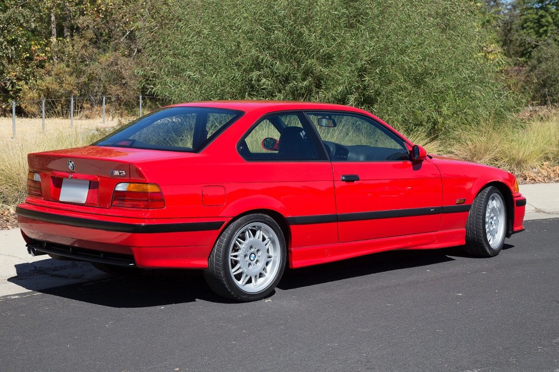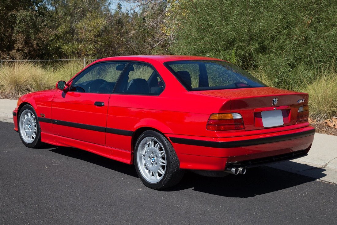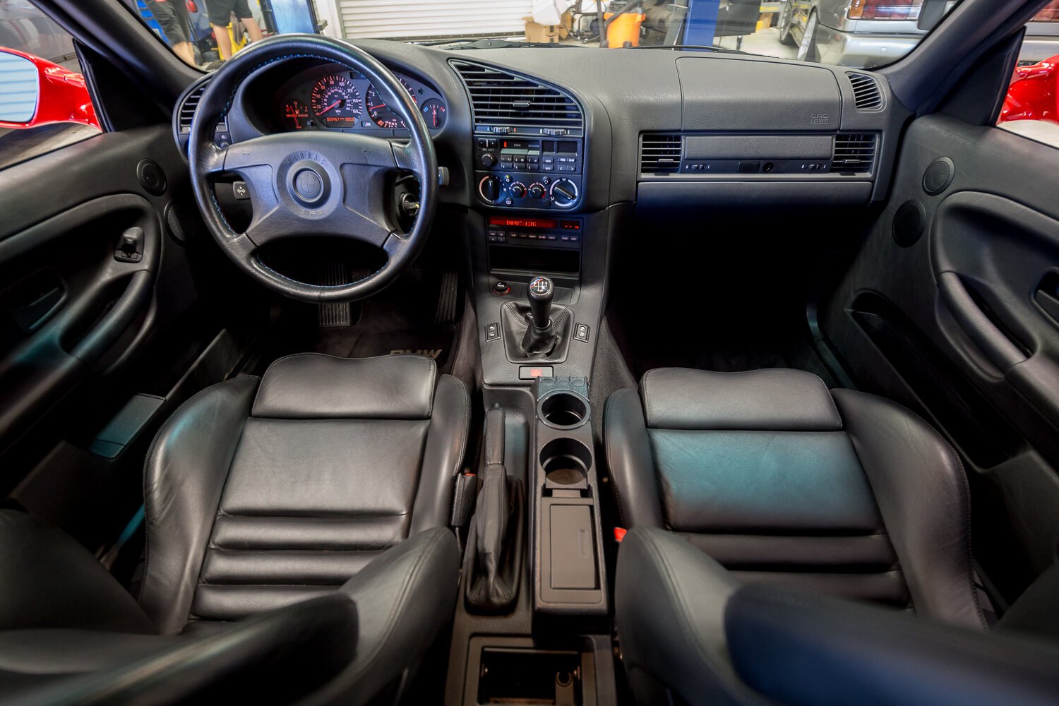 The car is powered by a 3.0L S50 inline-six paired with a 5-speed manual transmission and finished in Hellrot over black Nappa leather.