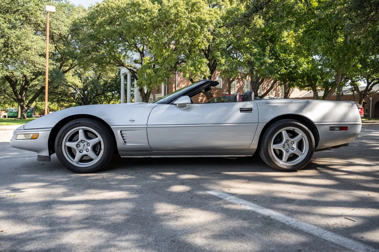 All Collector Edition Corvettes were finished in Sebring Silver Metallic and featured chrome commemorative badges on the nose, sides, and rear. Additional equipment includes pop-up headlights, integrated fog lights, a black fabric convertible soft top, quadruple taillights, and dual exhaust outlets.
