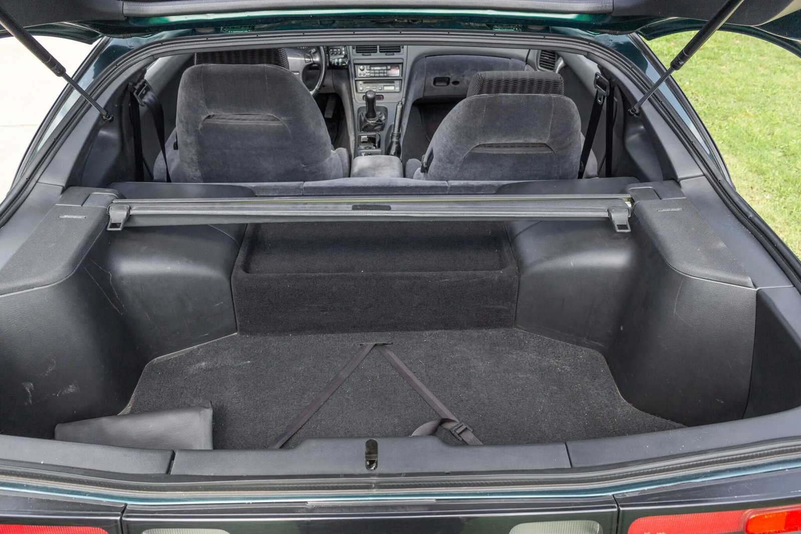 Equipment includes a limited-slip differential, Super HICAS four-wheel steering, adjustable suspension, removable glass roof panels, automatic climate control, a power-adjustable driver’s seat, cruise control, Bose Audio, a factory cassette deck, and an in-dash CD player.