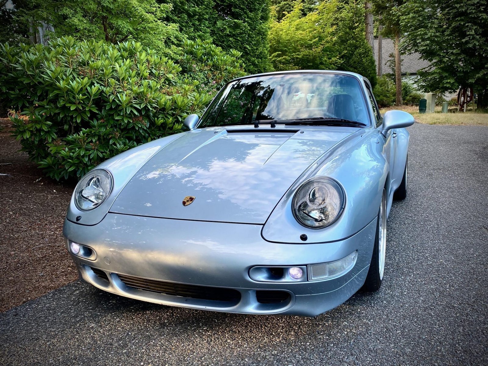 This 1996 Porsche 911 Carrera 4S coupe is finished in Polar Silver Metallic over black leather, and it is powered by a 3.6-liter flat-six paired with a six-speed manual transaxle and all-wheel drive.