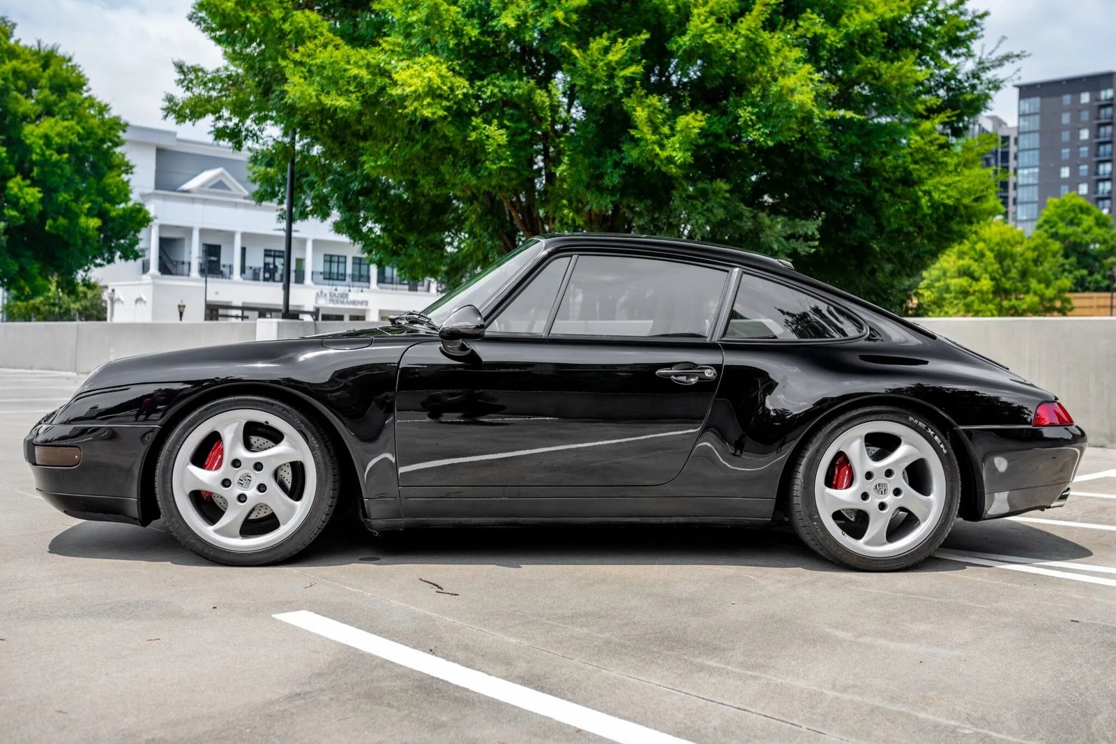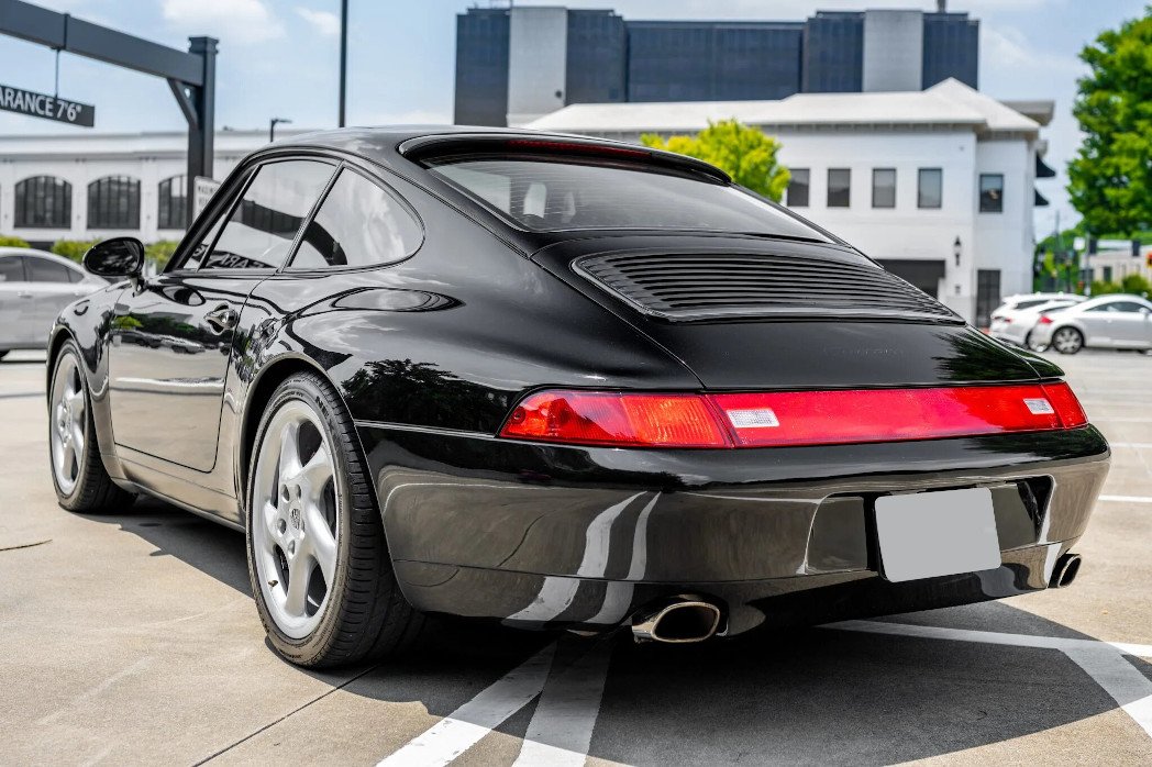 This 1996 Porsche 911 Carrera coupe is finished in black over a matching interior and powered by a 3.6-liter flat-six paired with a six-speed manual transaxle.