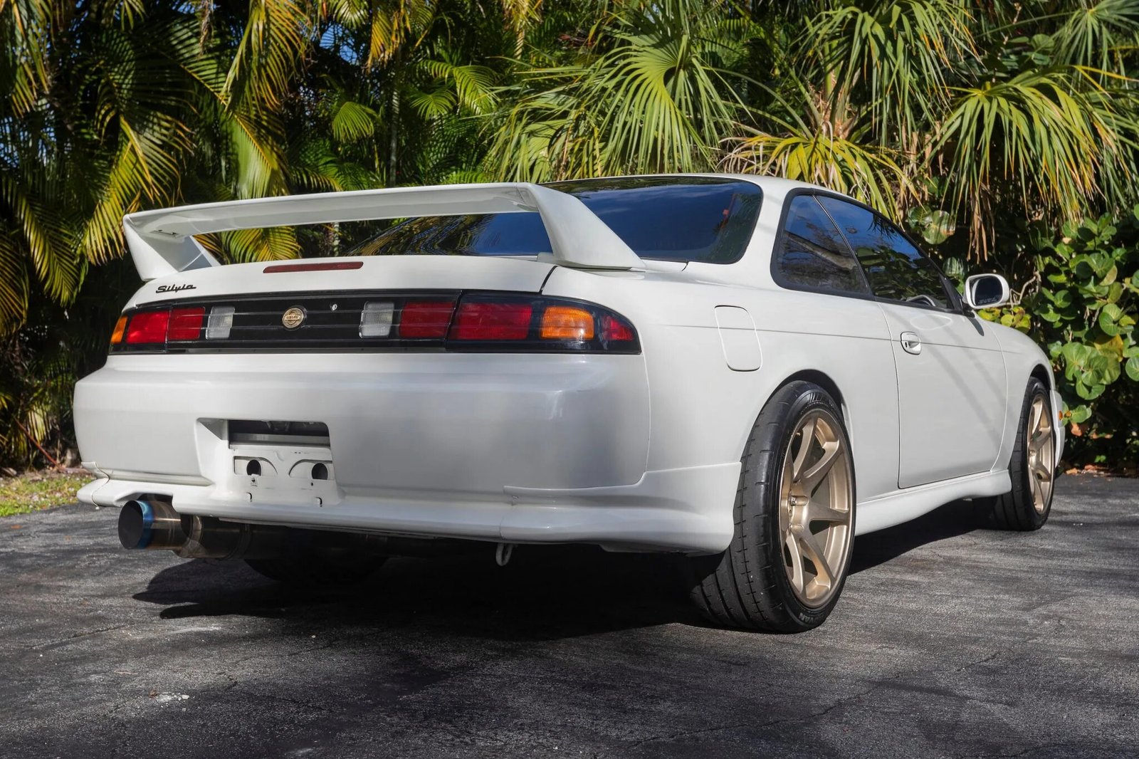 Features include a carbon-fiber antenna, an SRB front lip, HID headlights, window tint, and Silvia badging.
