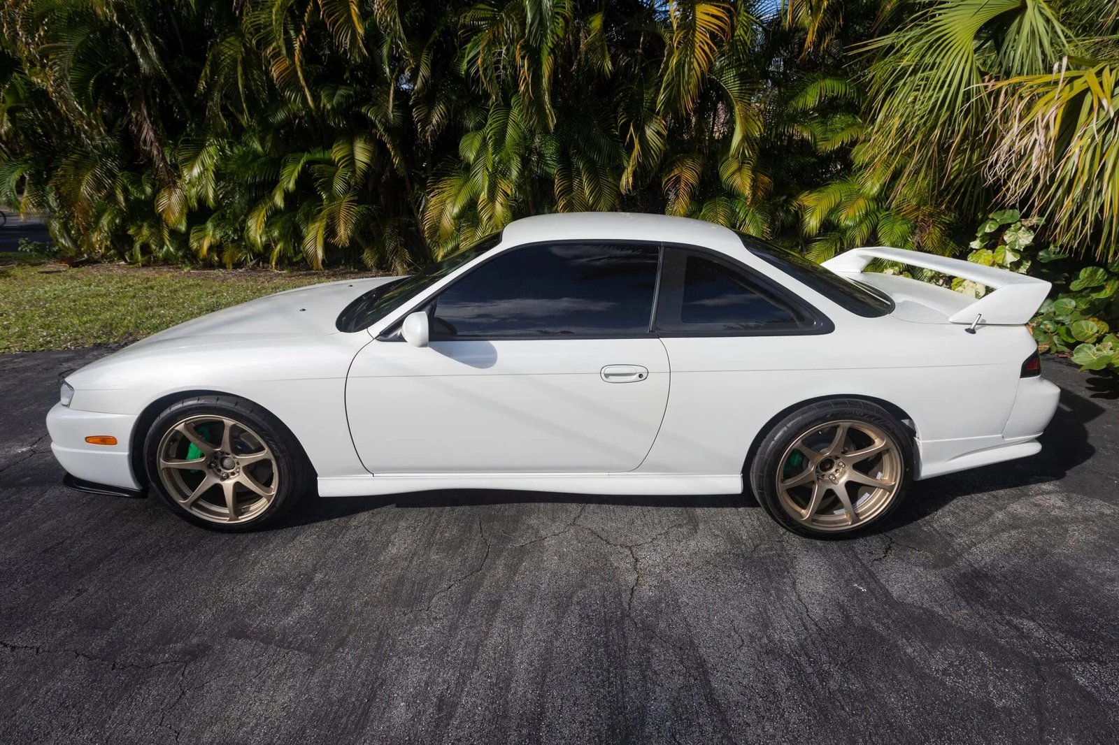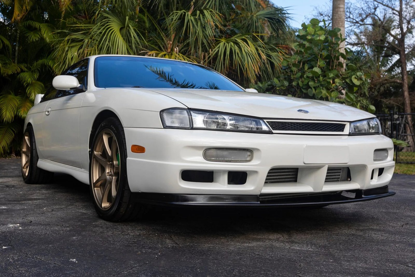This 1997 Nissan 240SX is powered by a replacement turbocharged 2.0-liter inline-four mated to a five-speed manual transmission, and it is finished in white over gray cloth.