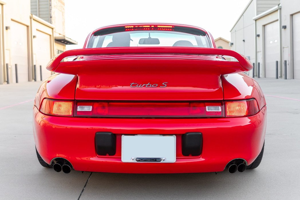 All Turbo S models were built by the Porsche Exclusive department and can be distinguished from a standard 993 Turbo by their rear fender vents, yellow brake calipers, biplane rear spoiler, four-tipped exhaust system, and Aerokit front spoiler with unique venting and fog light placement.