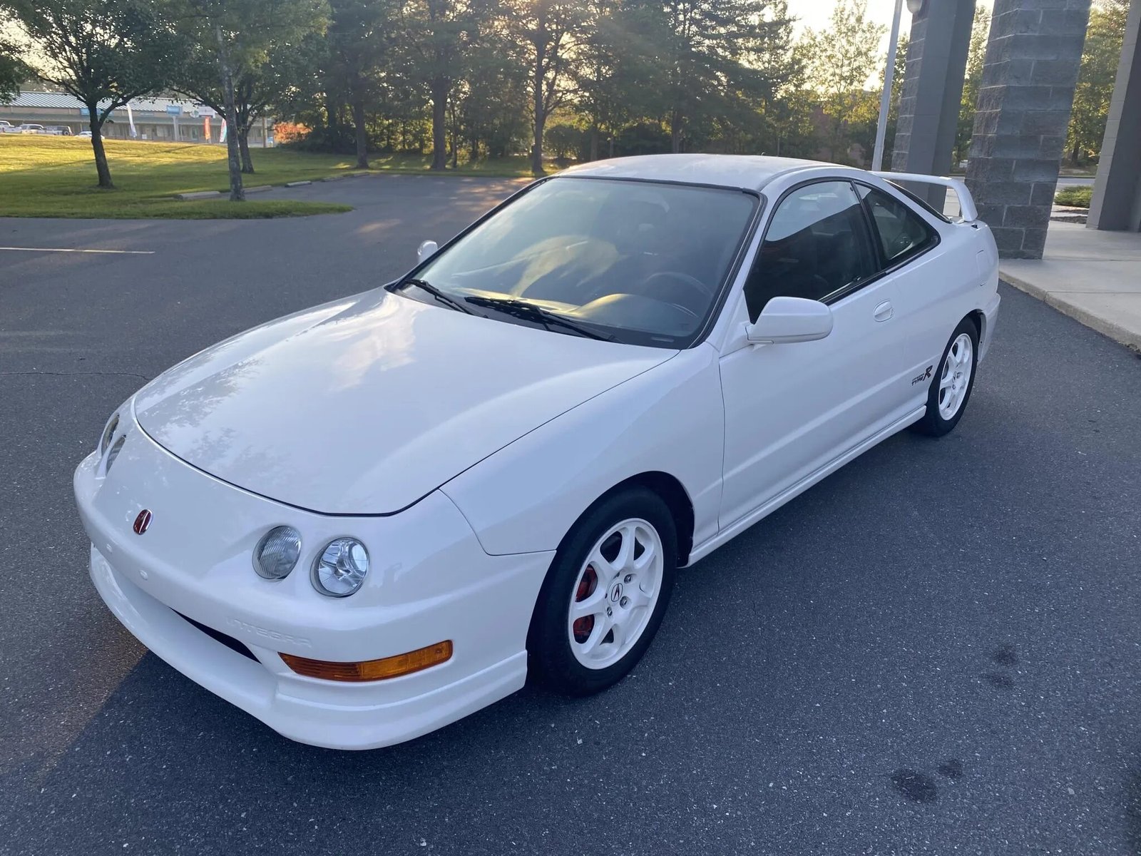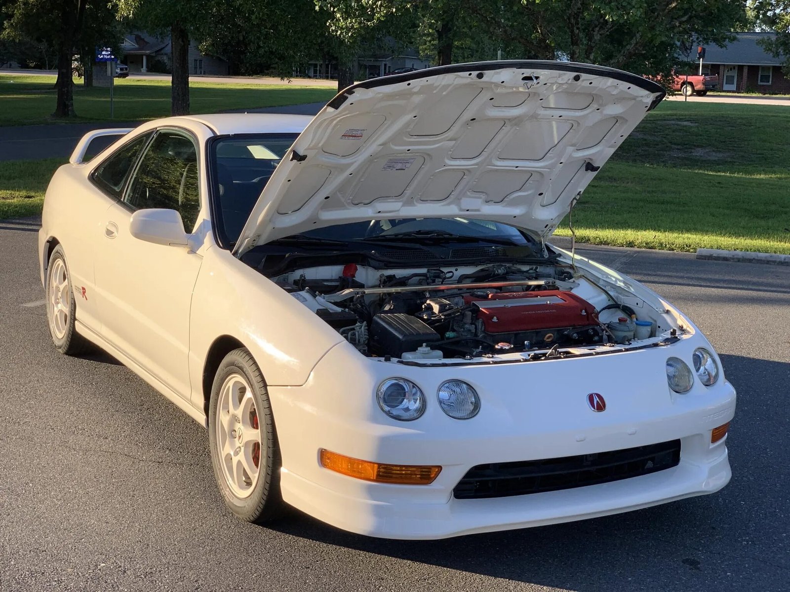 All US-market 1998 Type R models were finished in Championship White (NH-0), and this example have been repainted approximately three years ago. Exterior details include a front lip spoiler, a raised rear wing, a power antenna, a rear window wiper, Type R graphics, and red Acura badging.